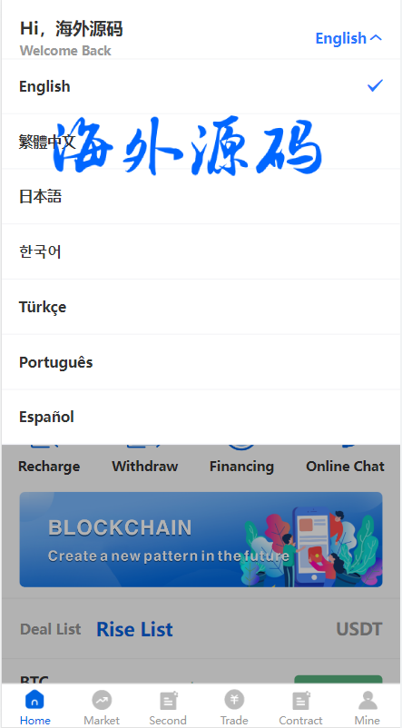 多语言交易所系统/秒合约交易/币币合约/c2c/质押投资