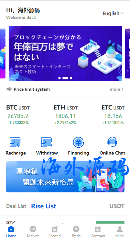 多语言交易所系统/秒合约交易/理财认购矿机闪兑贷款