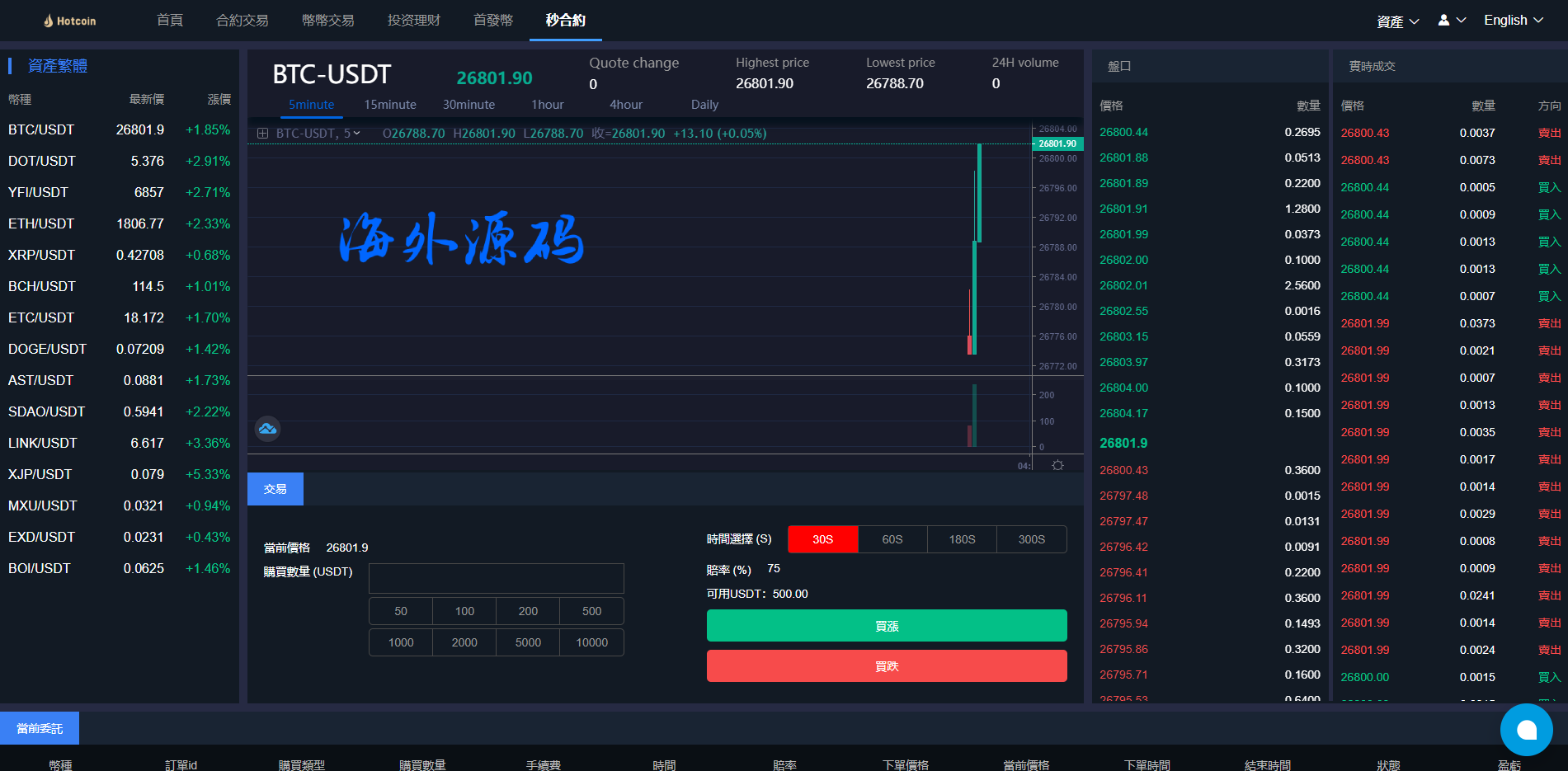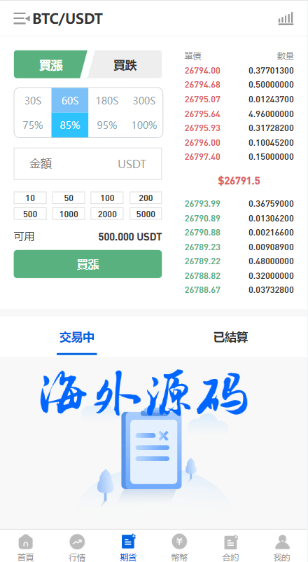 多语言微盘时间系统/币币合约期权交易/微交易/伪交易所源码