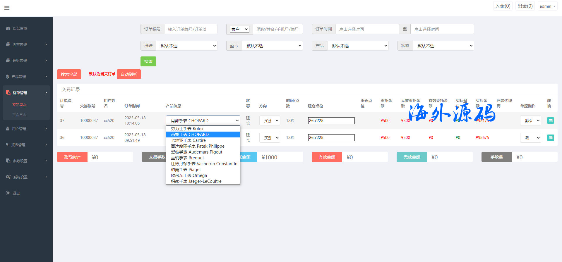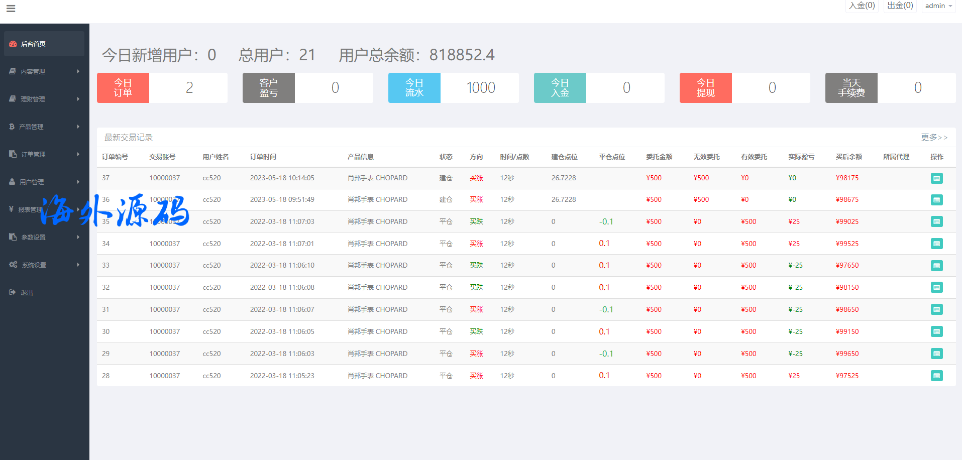 系统后台可控盈亏,功能完善,注意的是K线是坏的需要修复(可付费修复)