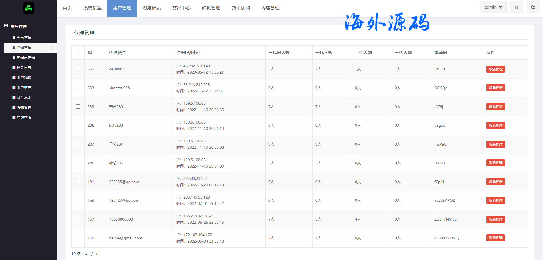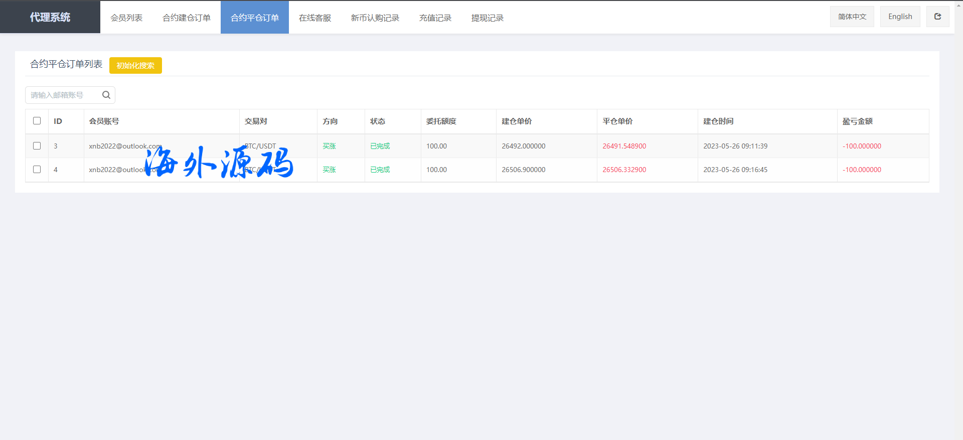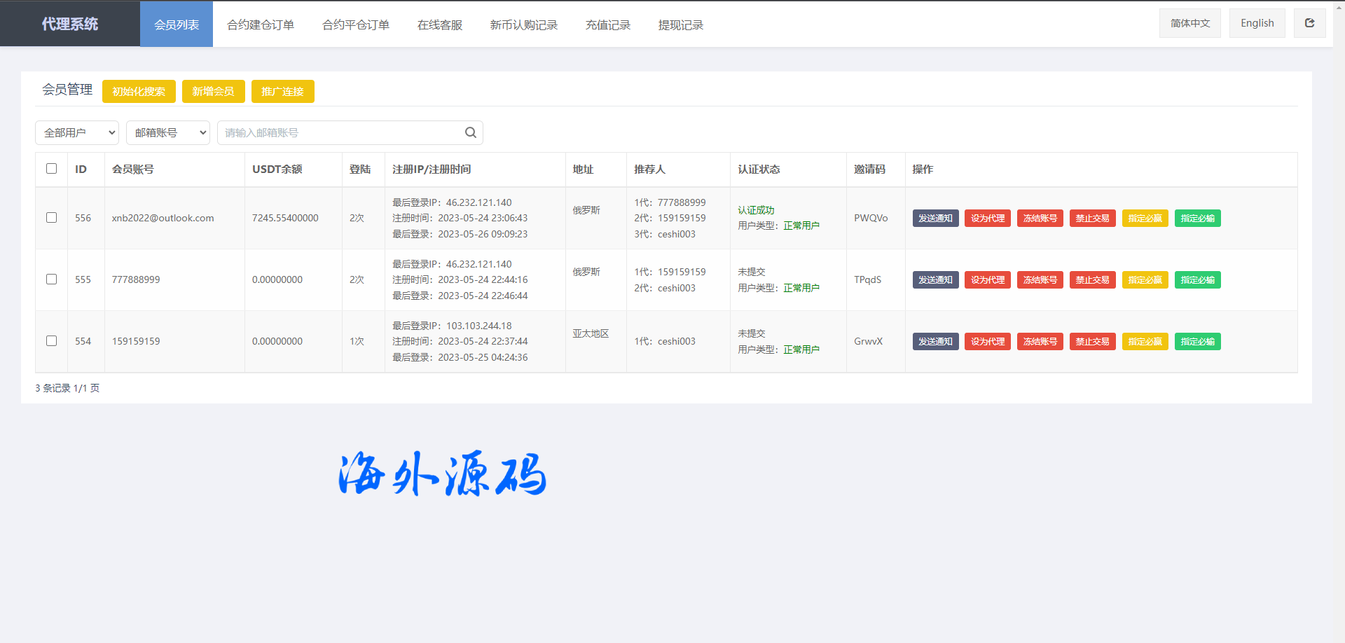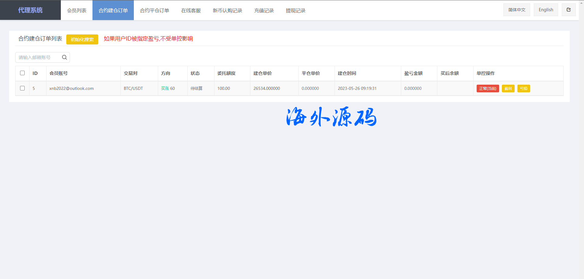 代理后台新增实质功能可设置用户控制、订单控制、代理后台双语言