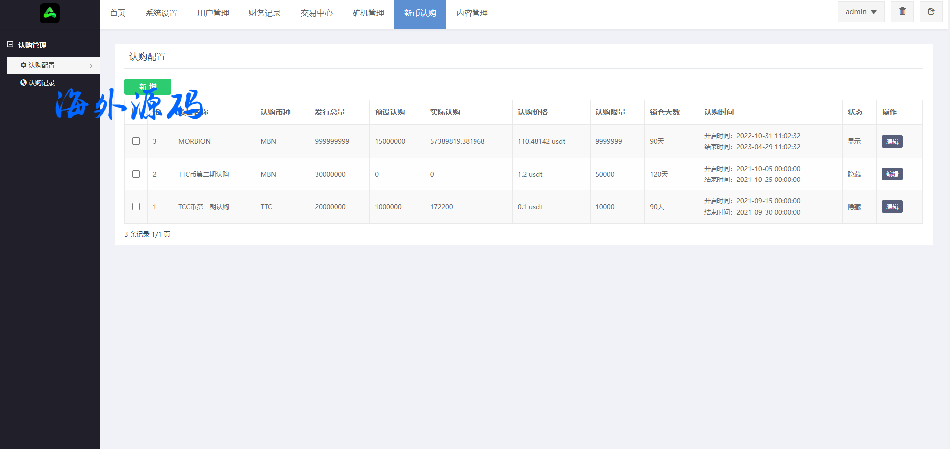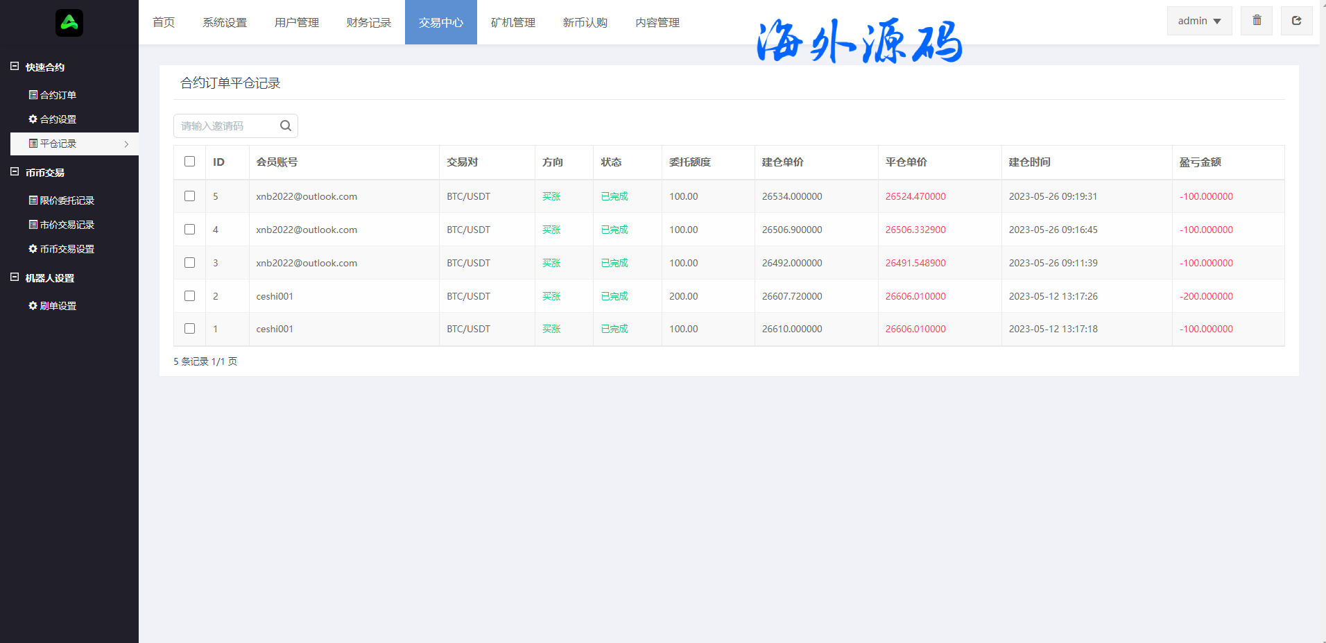 海外交易所系统/合约/期权/质押/秒合约/插针控制/申购