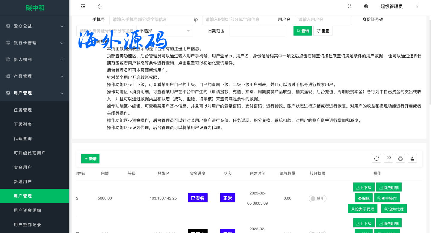 系统功能完善带代理后台,功能有签到,余额宝,爱心捐赠,邀请,转账等功能
