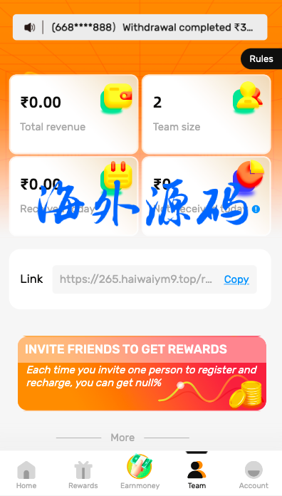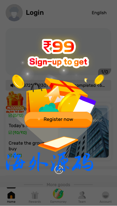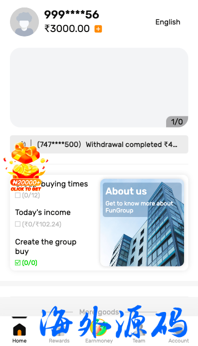 一套海外的拼团回购投资理财系统,前端英文跟印地语