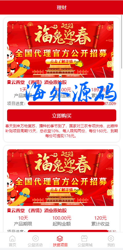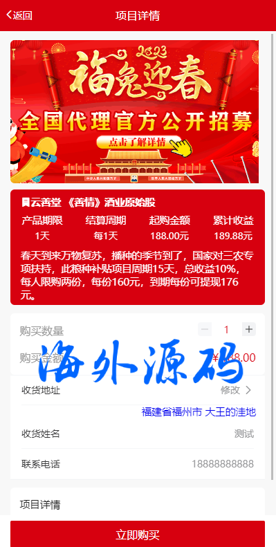 uniapp投资理财系统/投资认购/振兴产品投资/三级分销