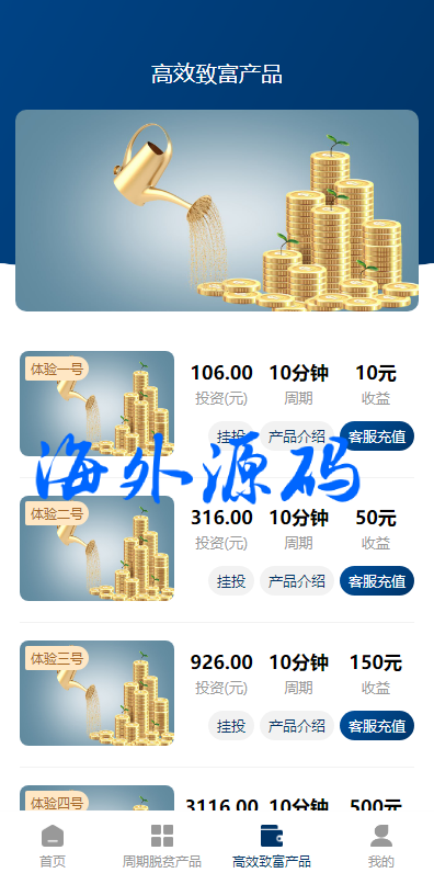 uniapp投资理财系统/投资认购/振兴产品投资/三级分销