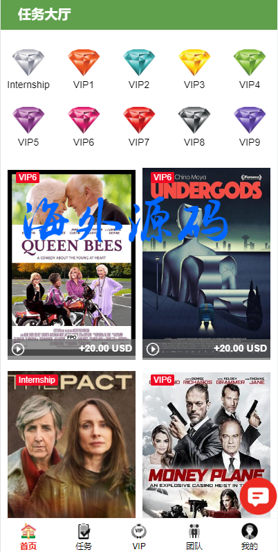 海外电影任务系统/看视频返利/电影视频投资刷单源码