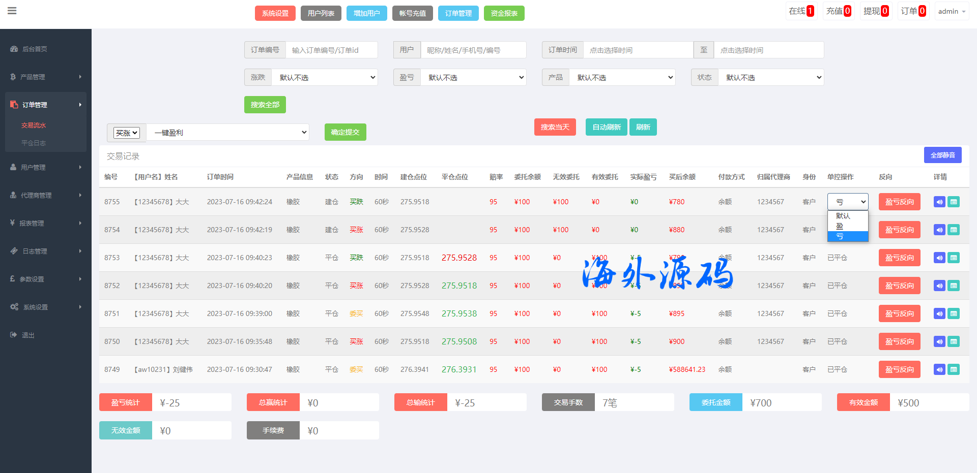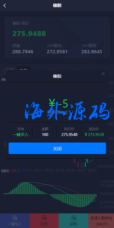 前端期货产品K线正常,新增一键买入、单用户风控等功能