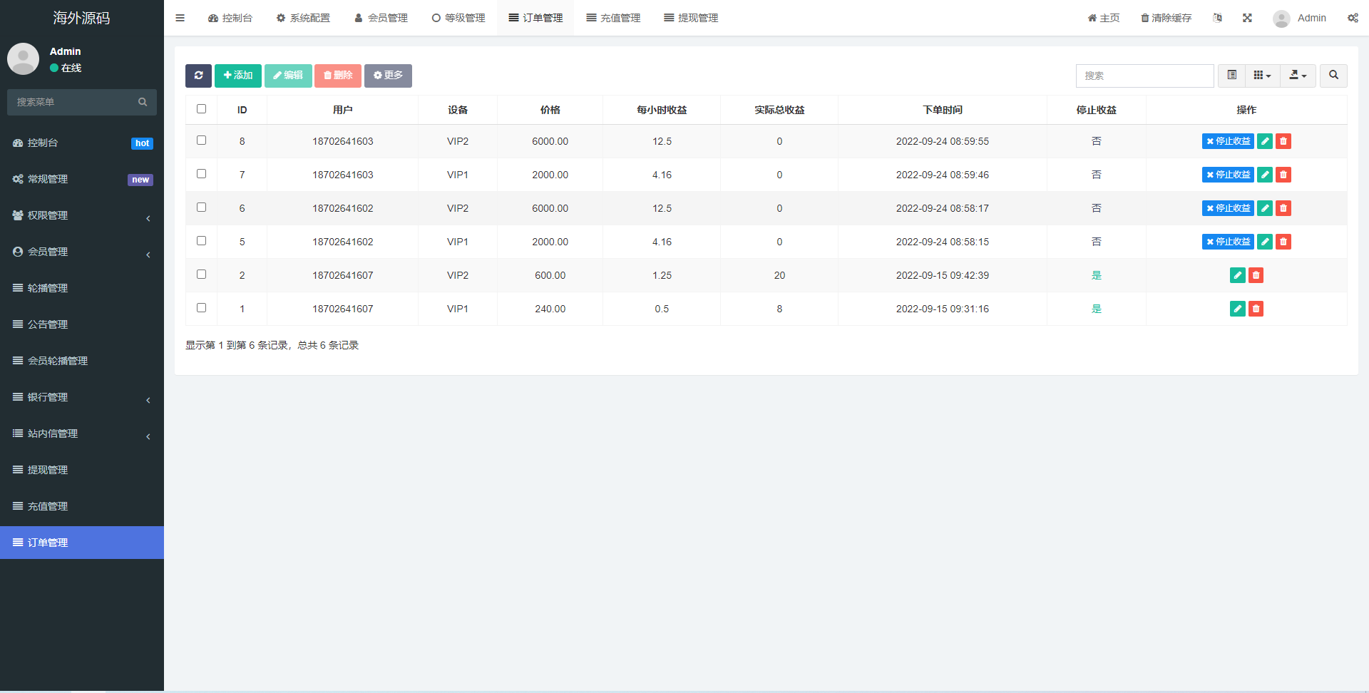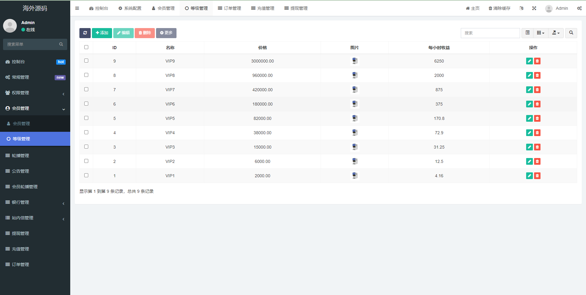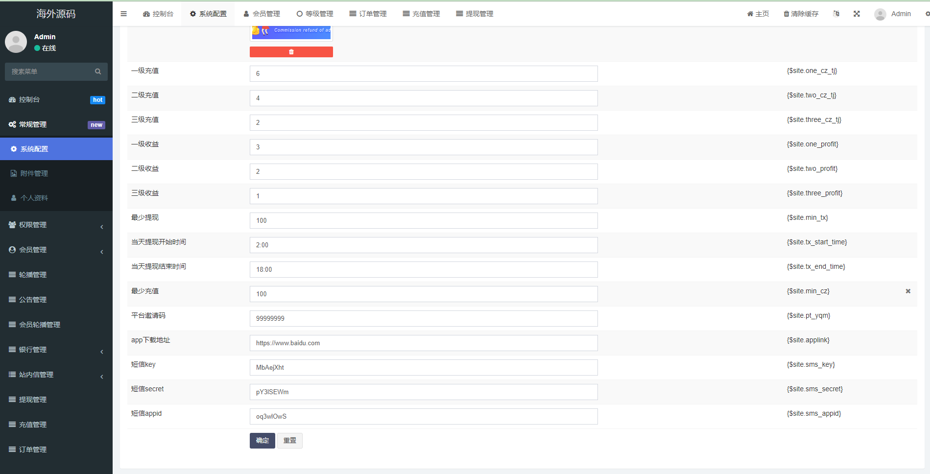 源码前端是十种语言,此套系统功能比较简洁只有个投资,然后一个三级分销推广的