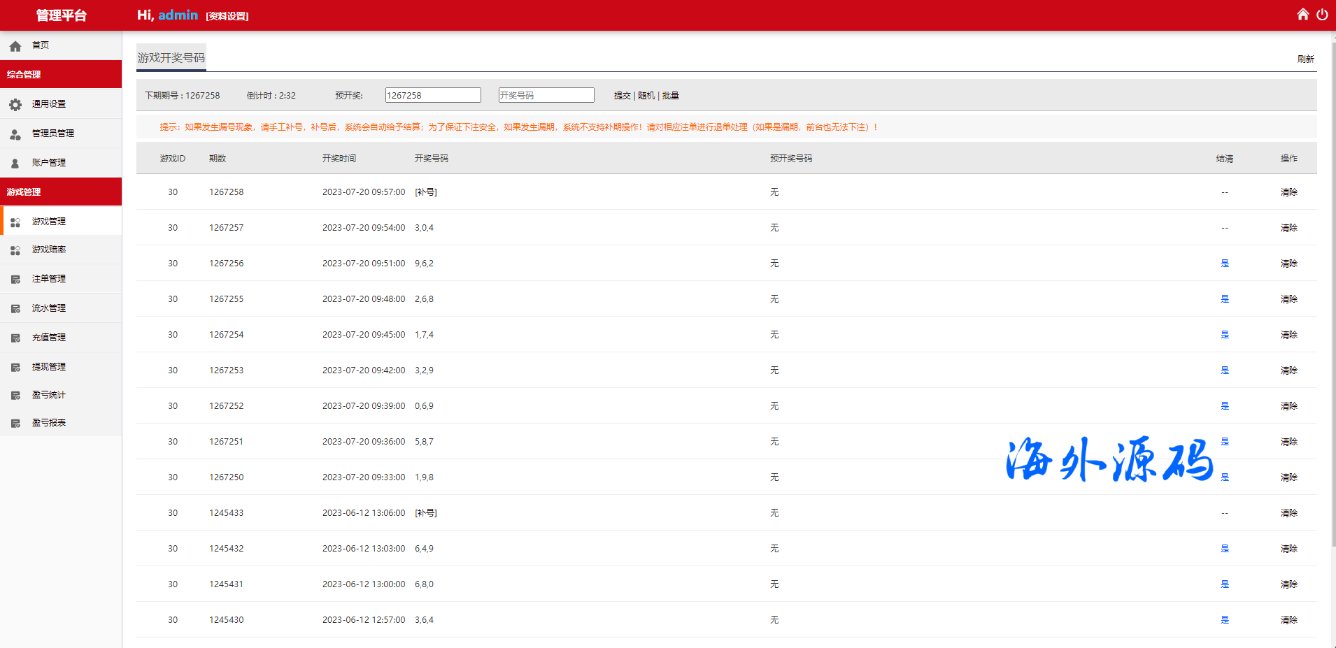 28游戏源码/时时彩游戏系统/28竞猜源码/Cp系统批量预设开奖