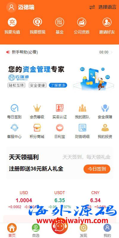 新版海外投资理财系统/多语言投资返利/IM社区/10级分销