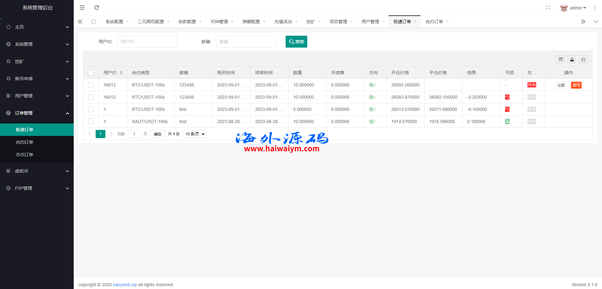 多语言虚拟币交易系统/秒合约交易/伪交易所/时间盘