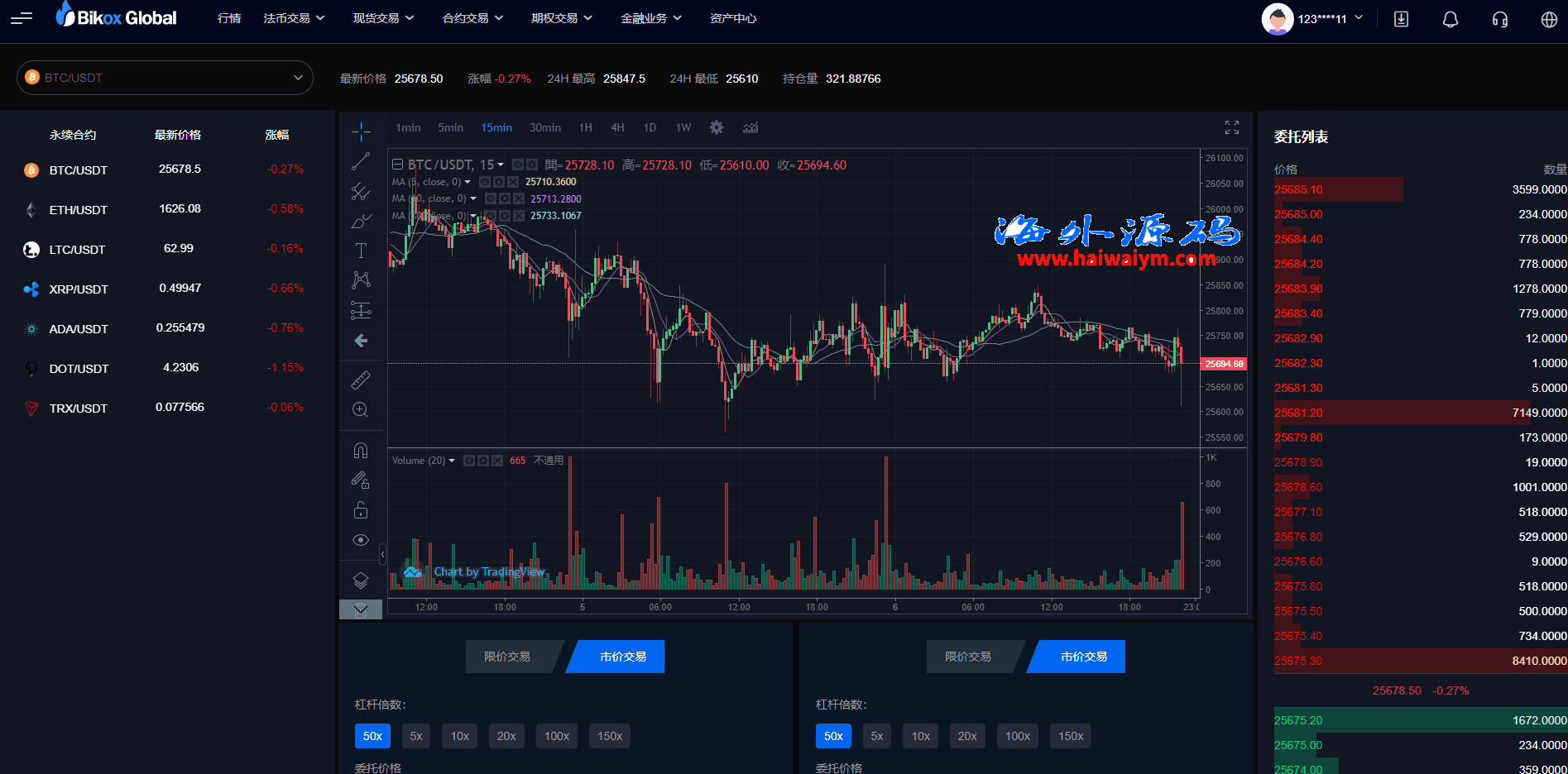 海外交易所系统/永续合约交割合约/K线控制/质押理财