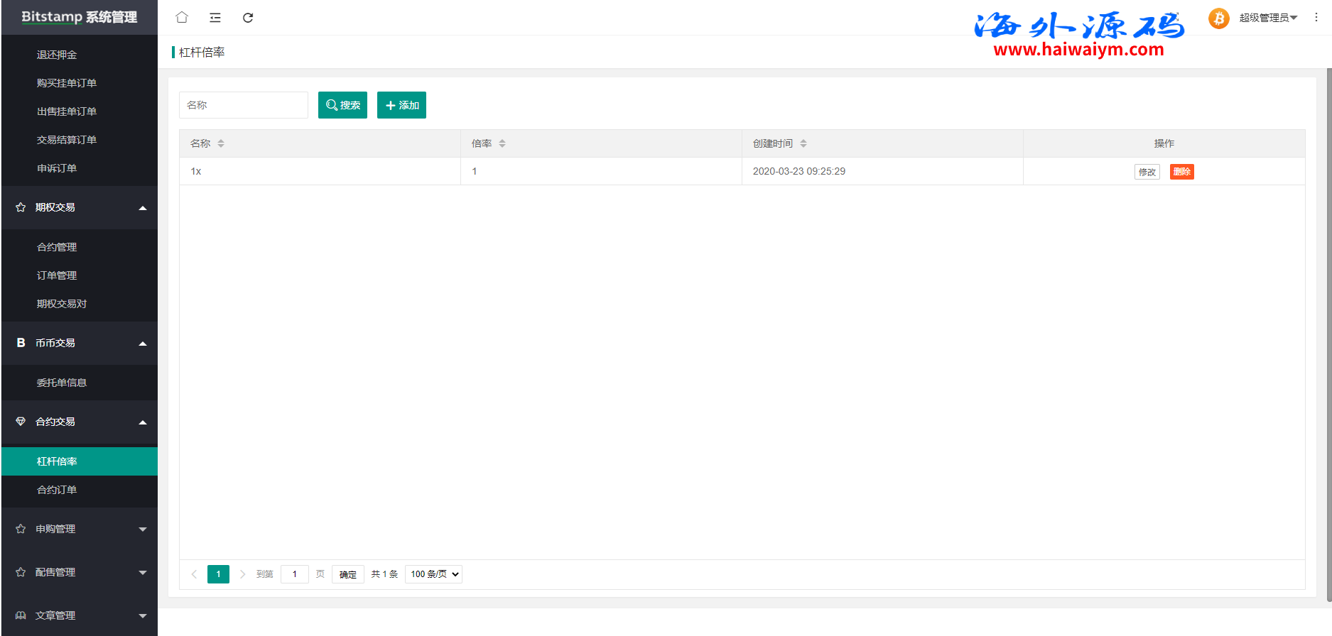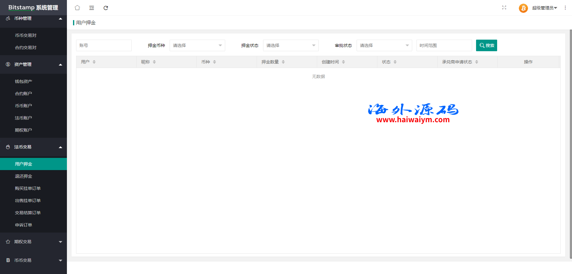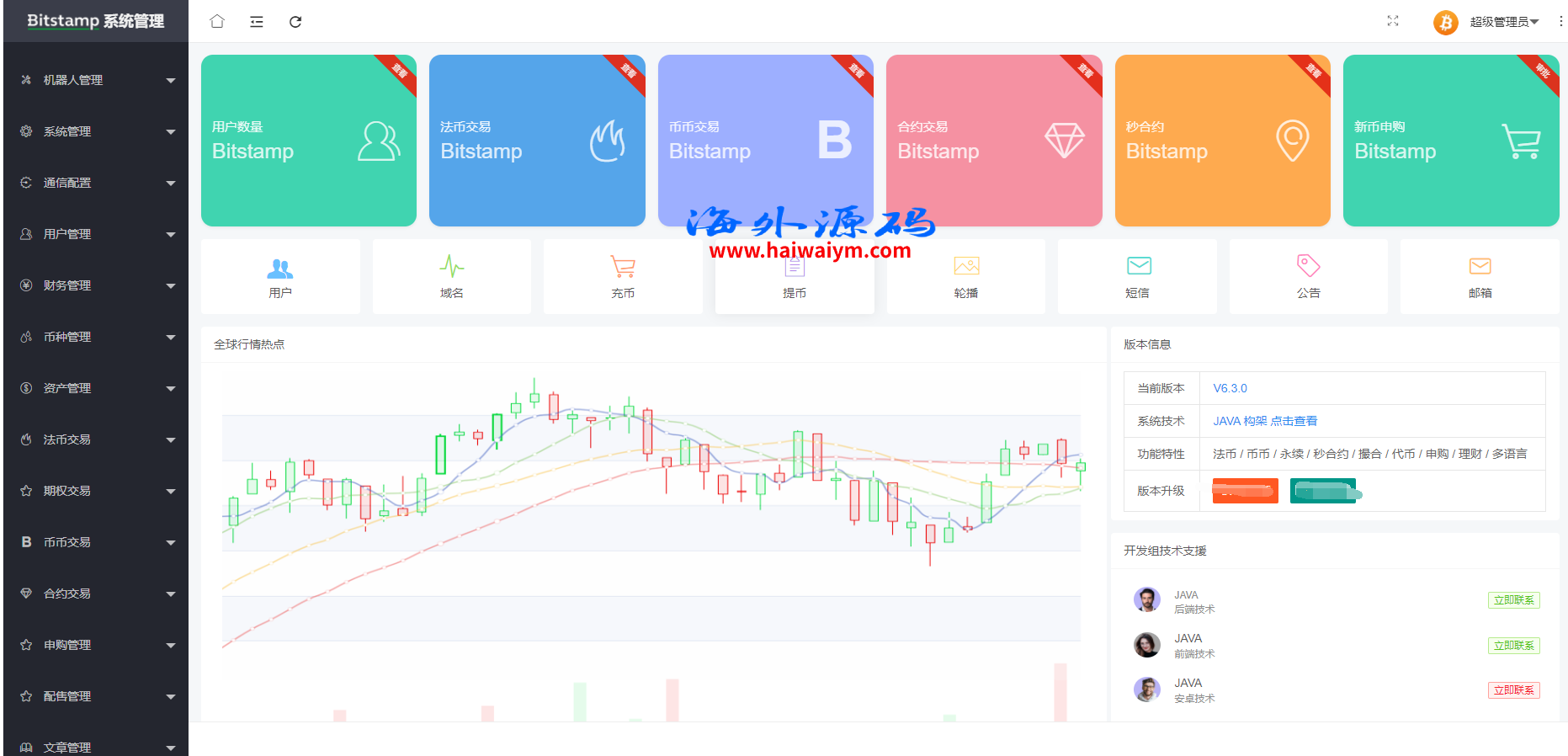 系统带期权、合约、法币交易、可发币控行情,不带理财挖矿