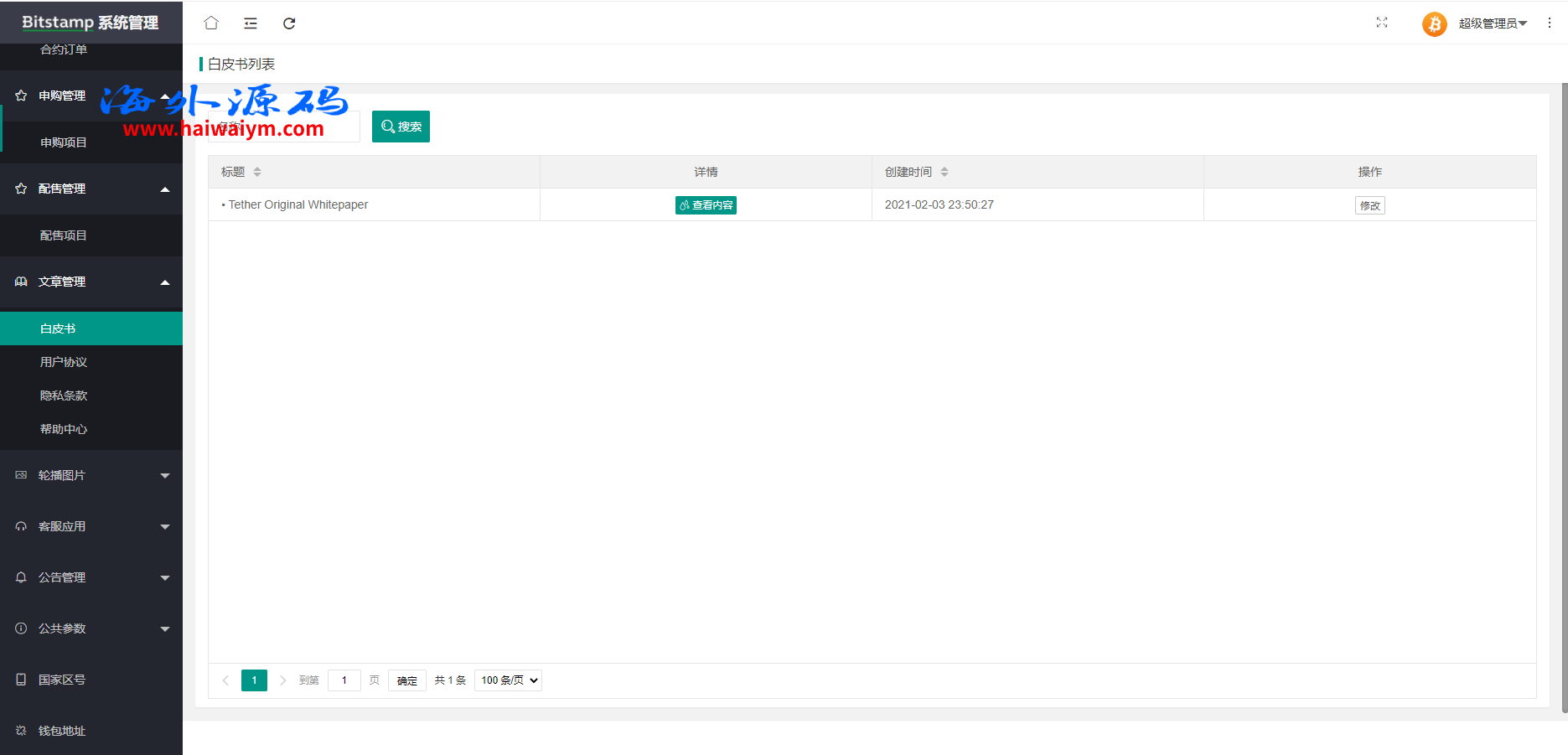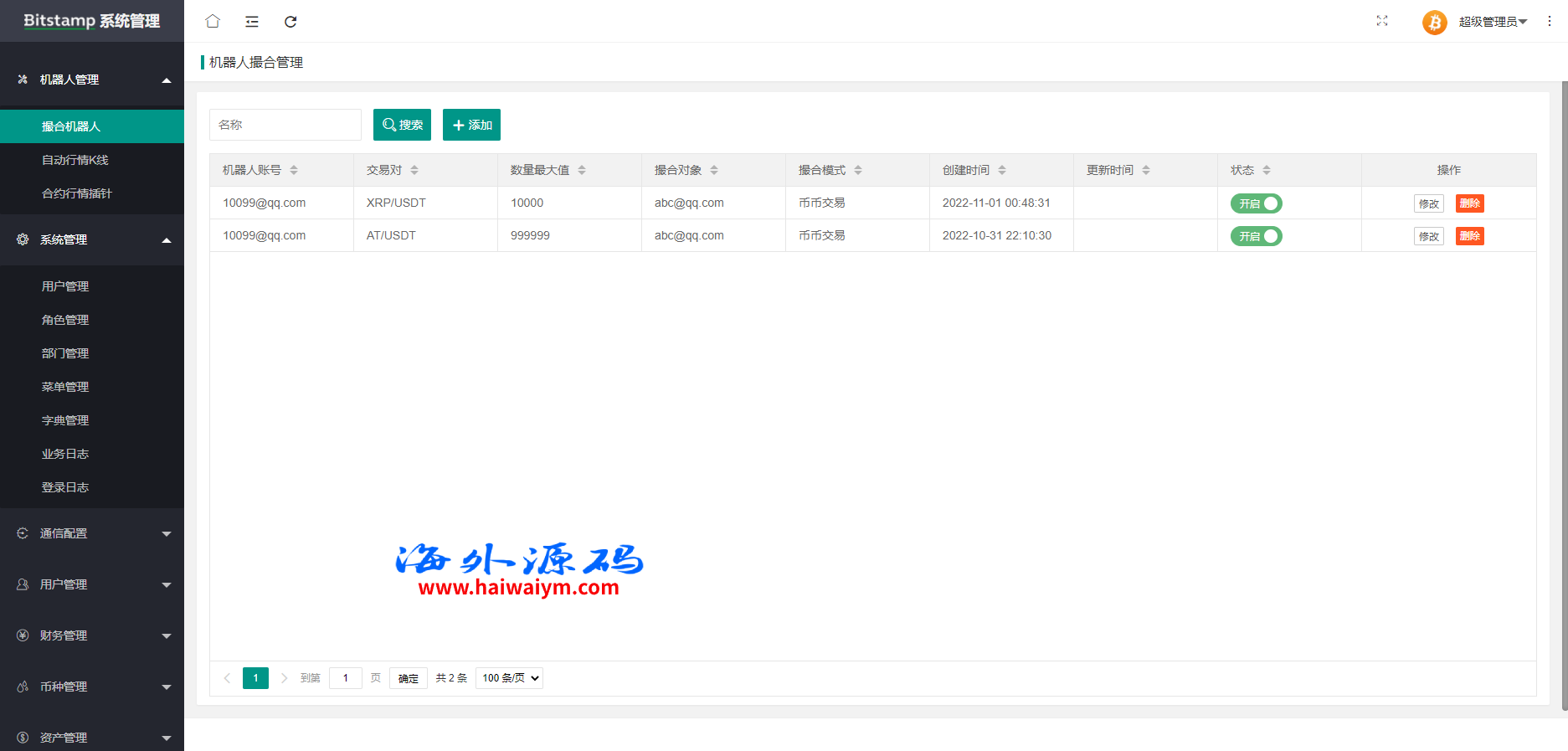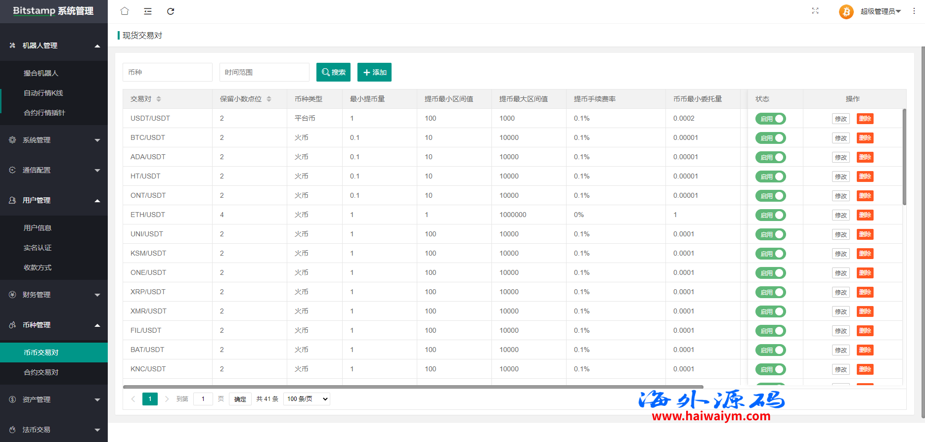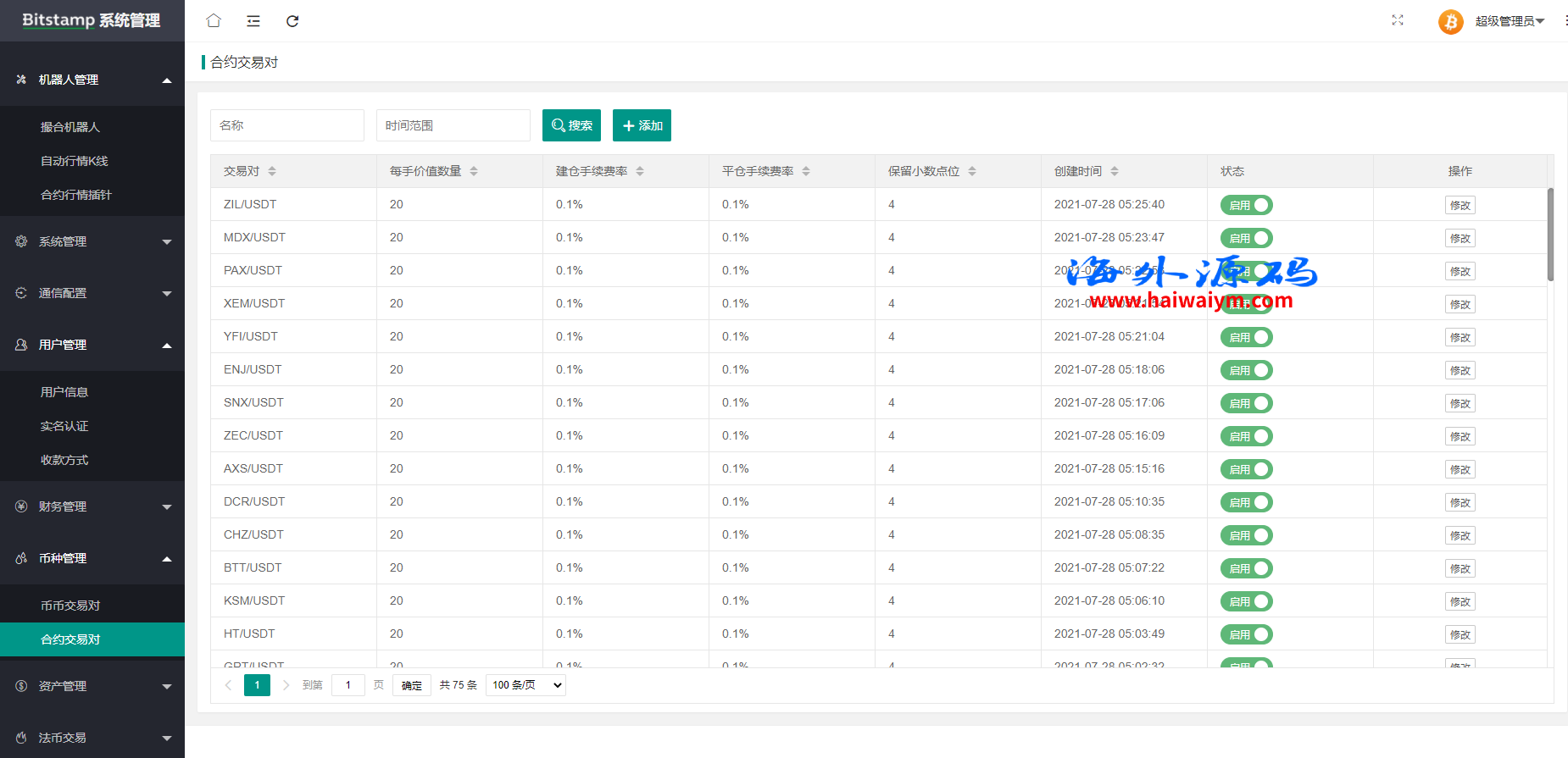 系统带期权、合约、法币交易、可发币控行情,不带理财挖矿