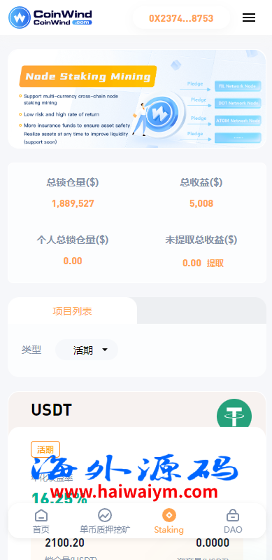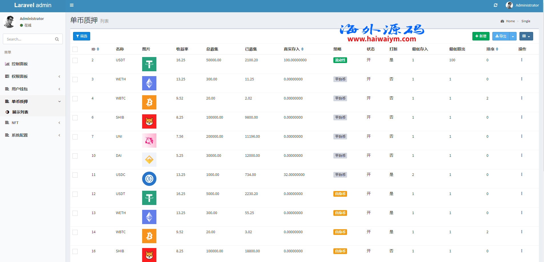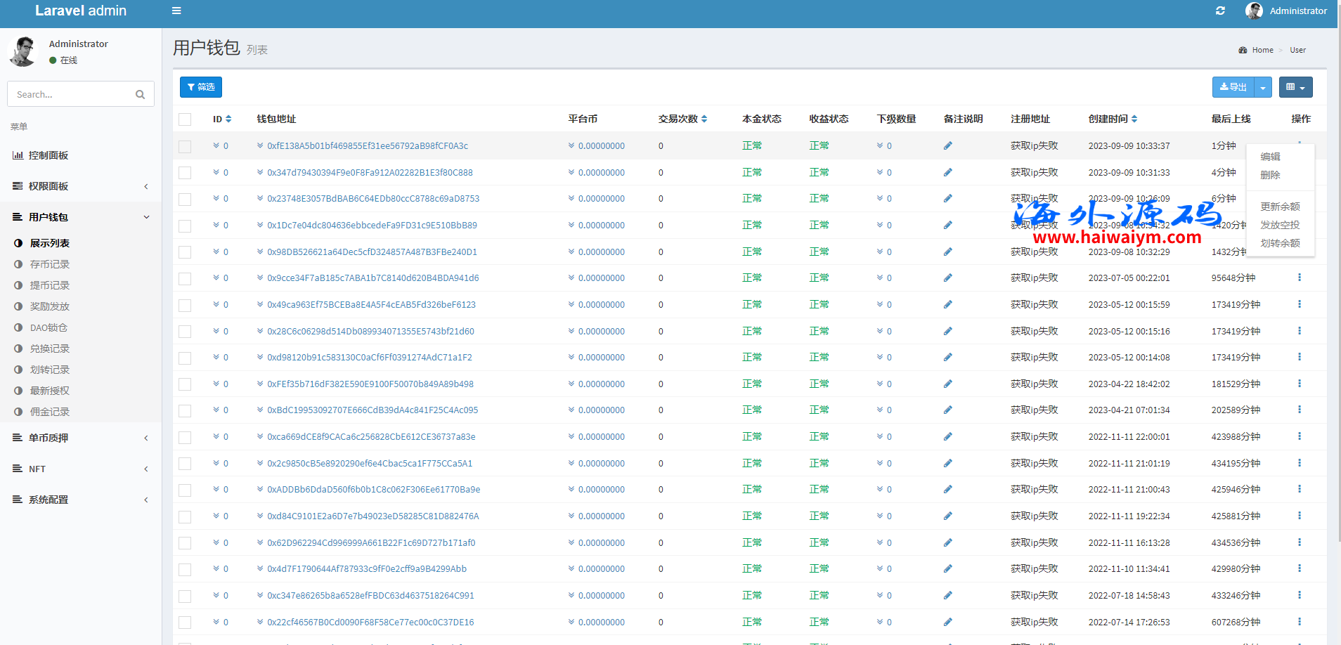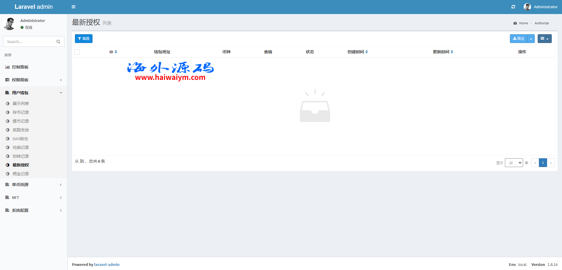 系统是Laravel框架开发的ETH授权质押系统,正常钱包登录,前端中文跟英文