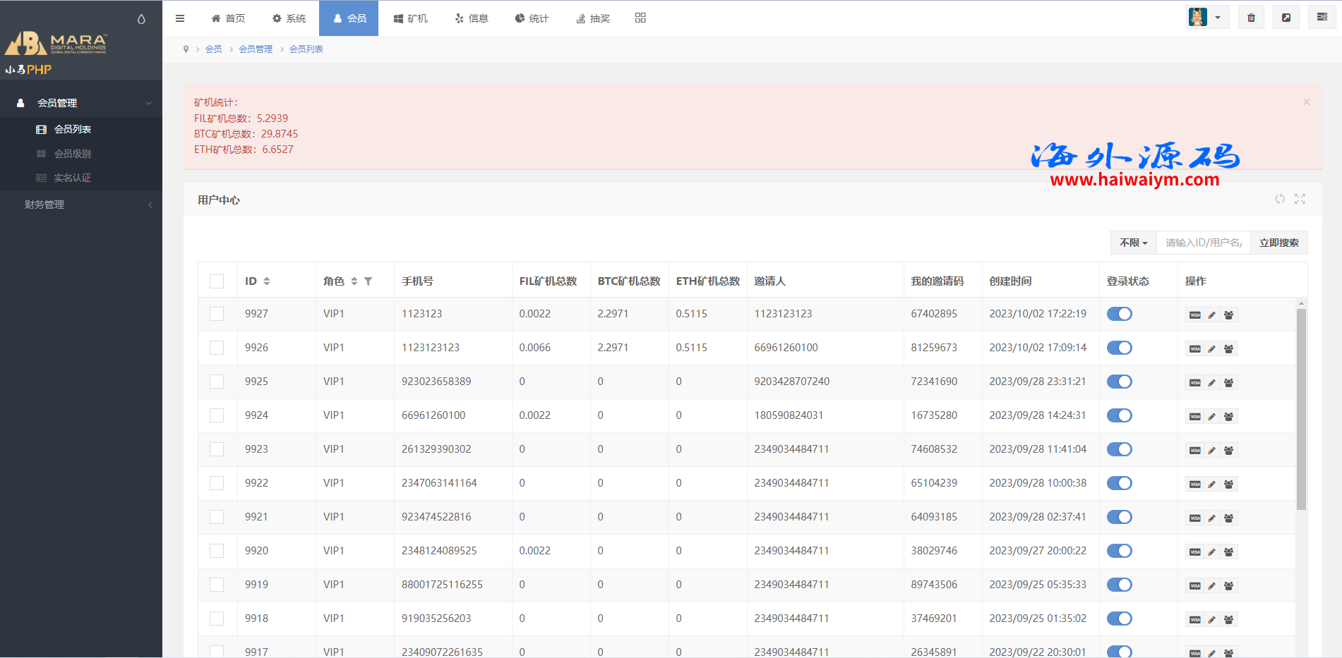 海外矿机系统/平台币矿机/三级分销/JAVA开源