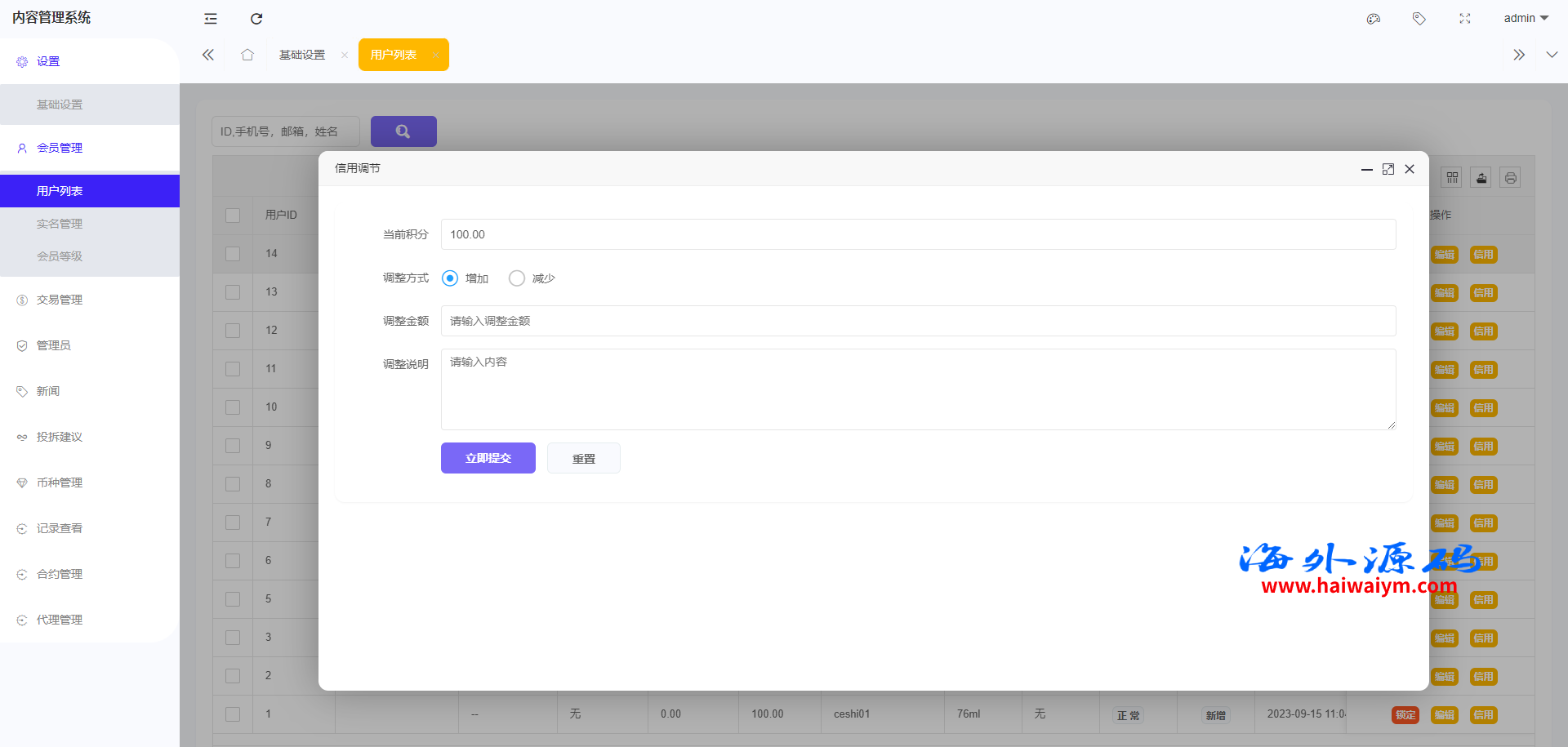 4.后台增加手动上分下分功能