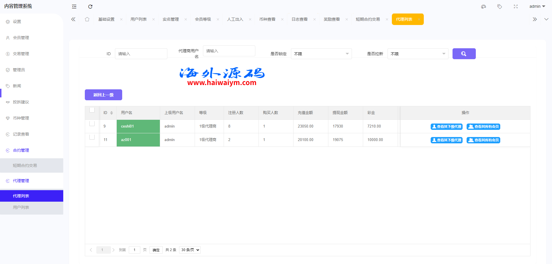 6.支持代理后台,增加代理线各项数据展示列表