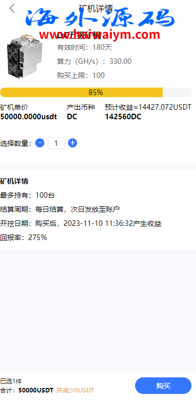 海外矿机投资系统/算力矿机投资源码/投资理财系统