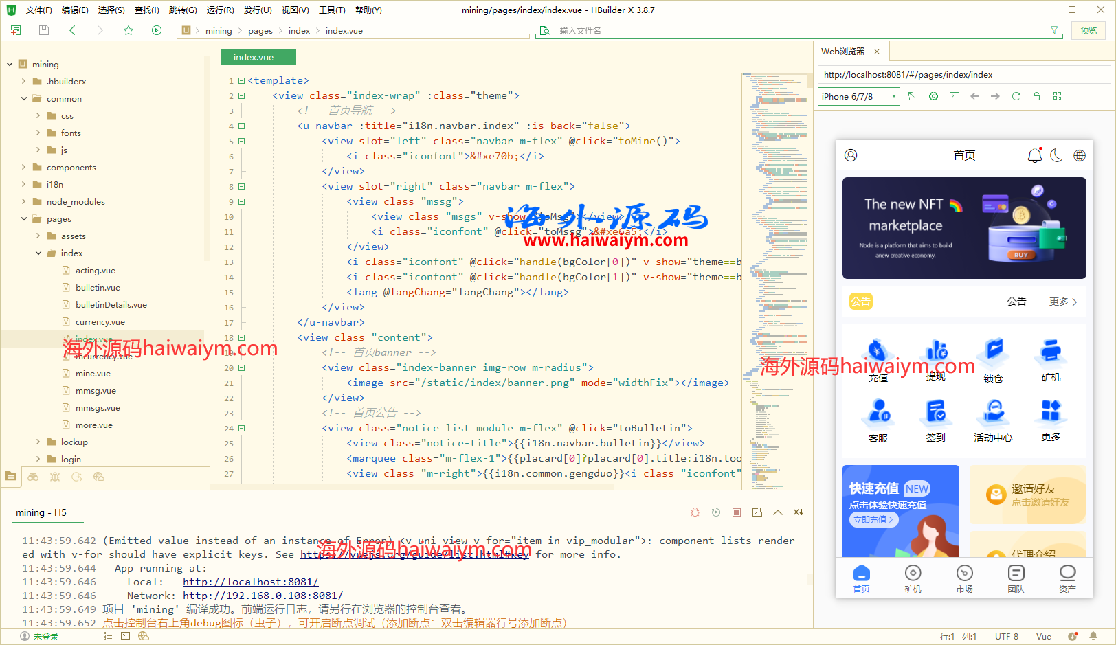 海外定制版矿机投资系统/算力矿机质押投资/前端uinapp