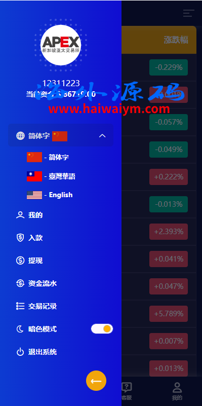 多语言微交易/贵金属外汇虚拟币微盘源码/越南时间盘