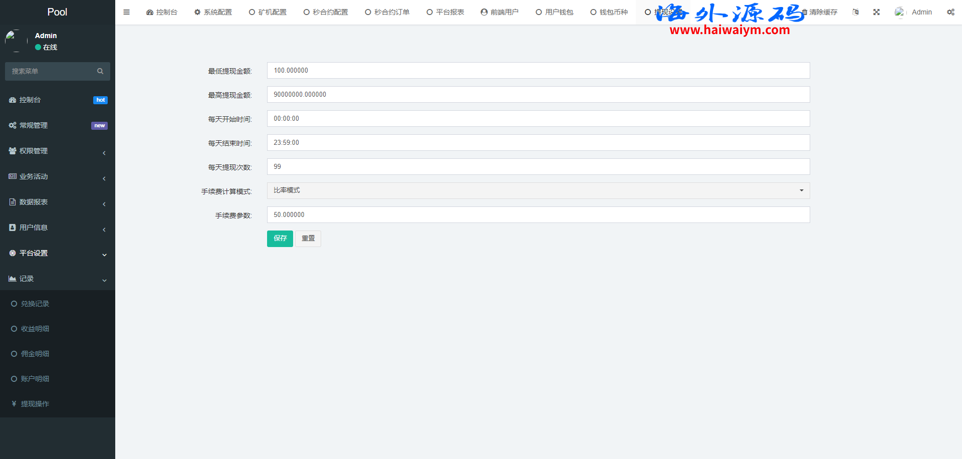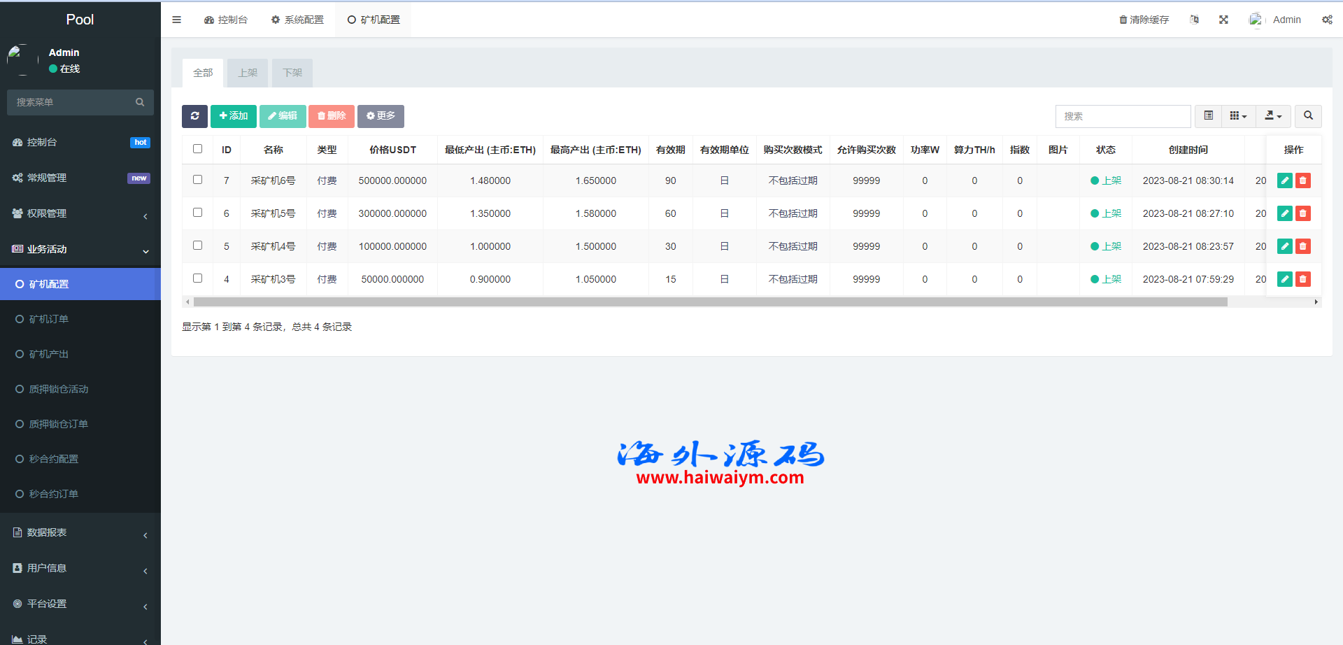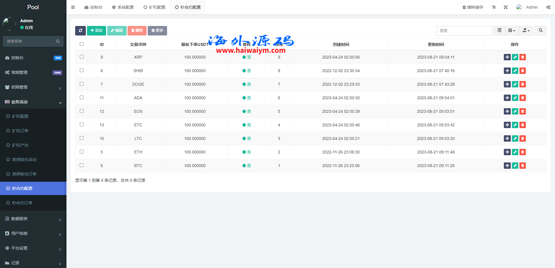 海外交易所系统/合约/期权/质押/秒合约/插针控制/申购