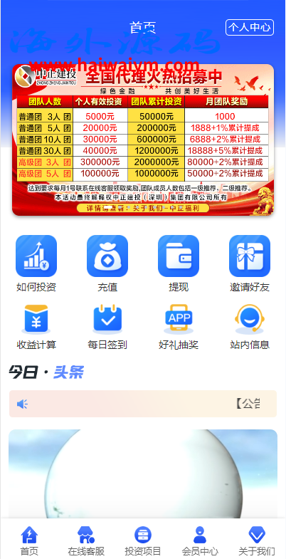 新UI投资理财系统/一路一带投资/签到/邀请返利