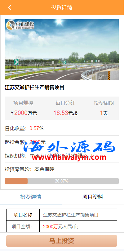 海外投资众筹系统/越南投资理财/前端VUE