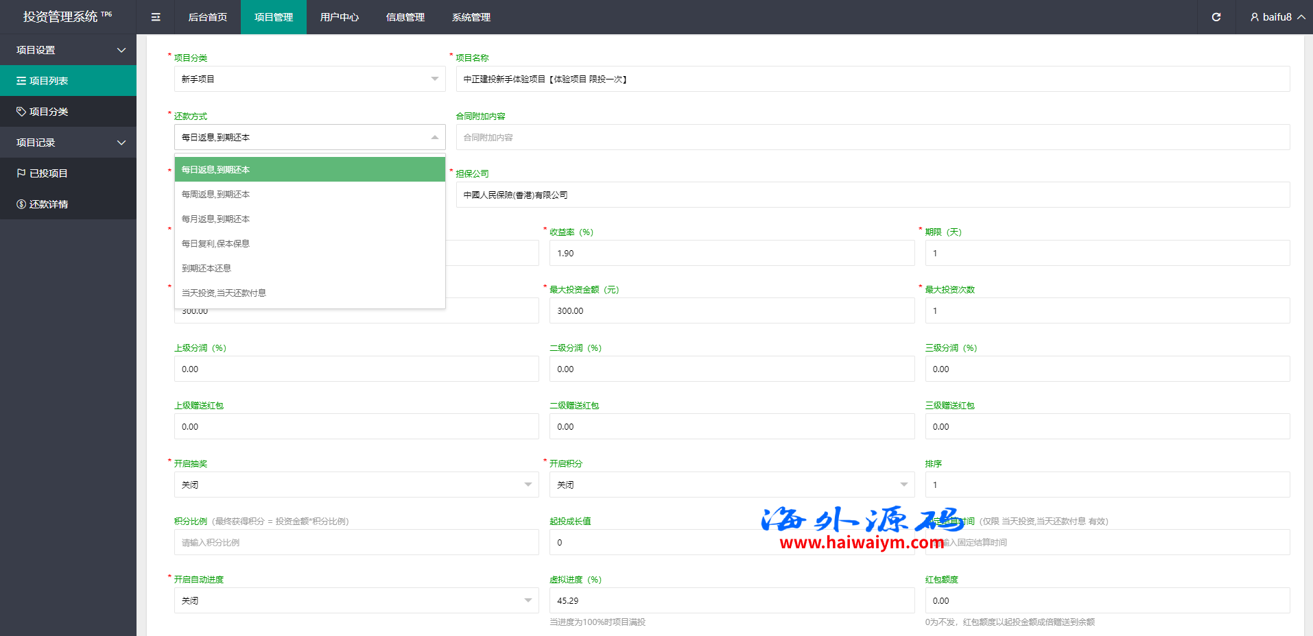 投资产品可更改,前端单中文可二开多语言