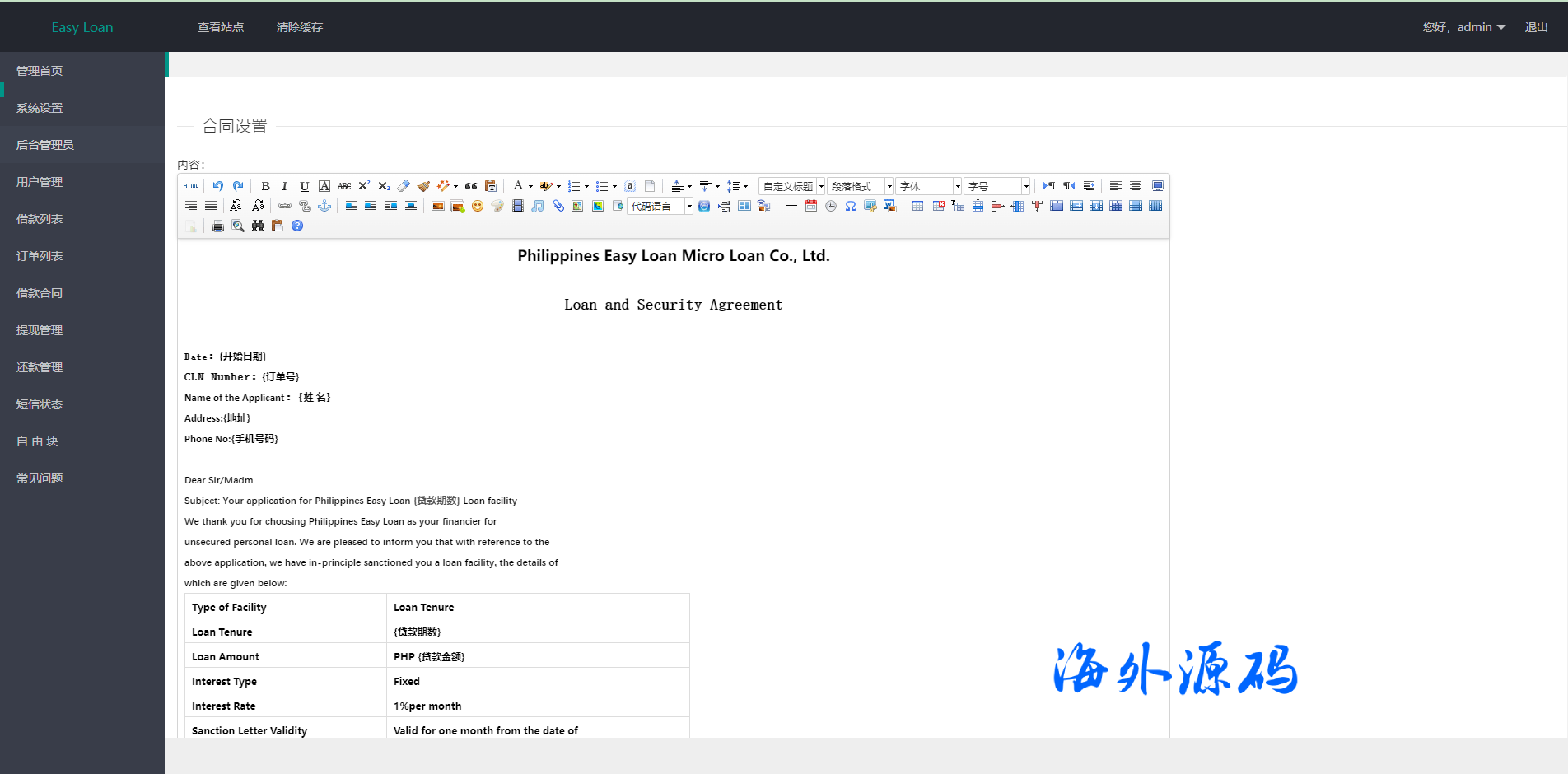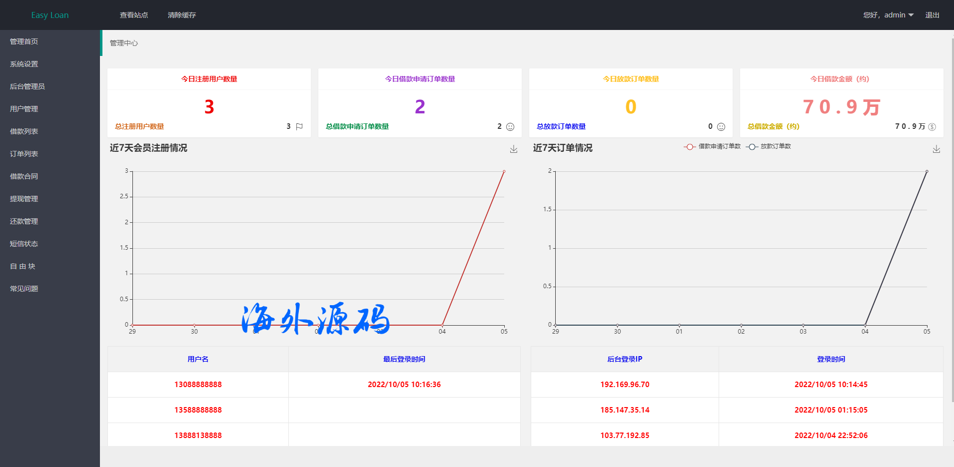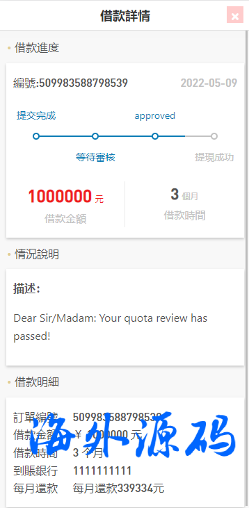 海外贷款平台/小额贷款系统/信用分/合同/提现码