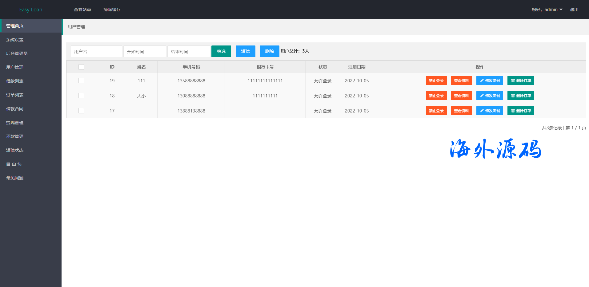 越南贷款系统/海外小额贷款源码/套路贷系统