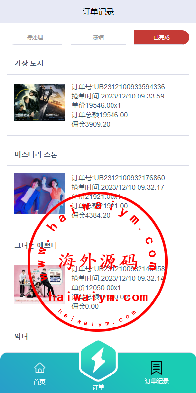 多语言电影抢单刷单系统/影视连单卡单/签到/任务