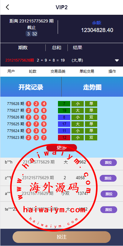 28游戏源码/时时彩游戏系统/28竞猜源码/Cp系统批量预设开奖