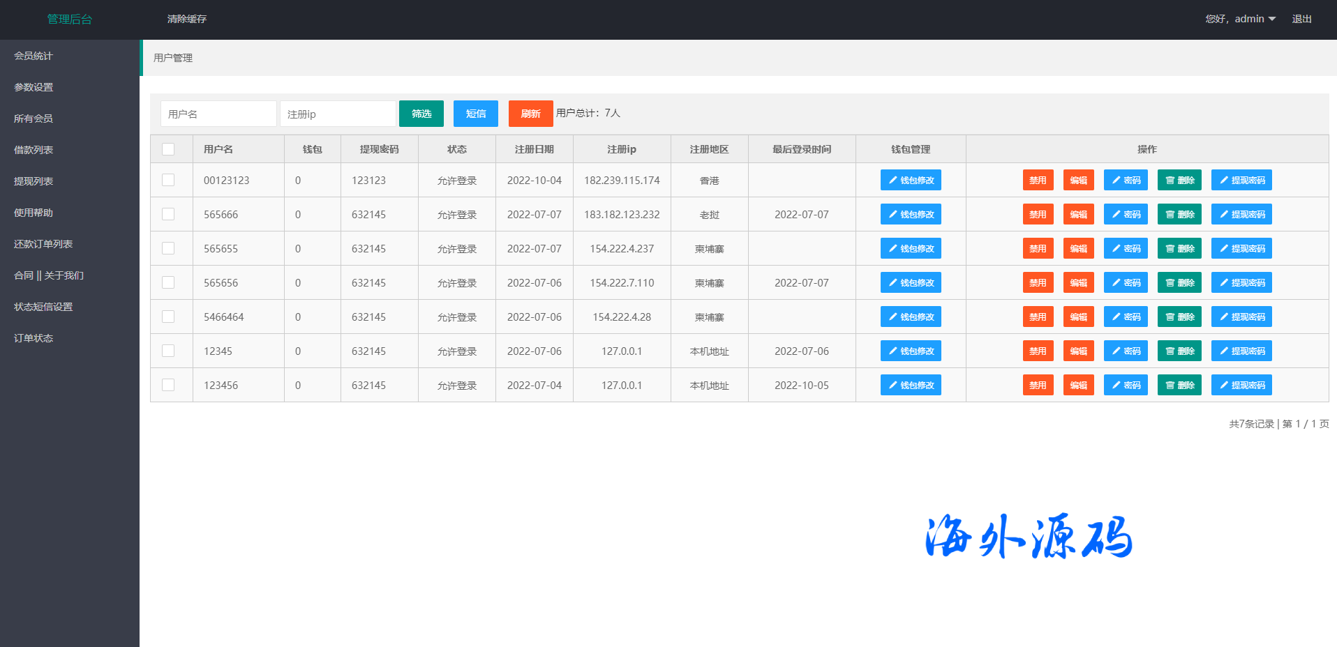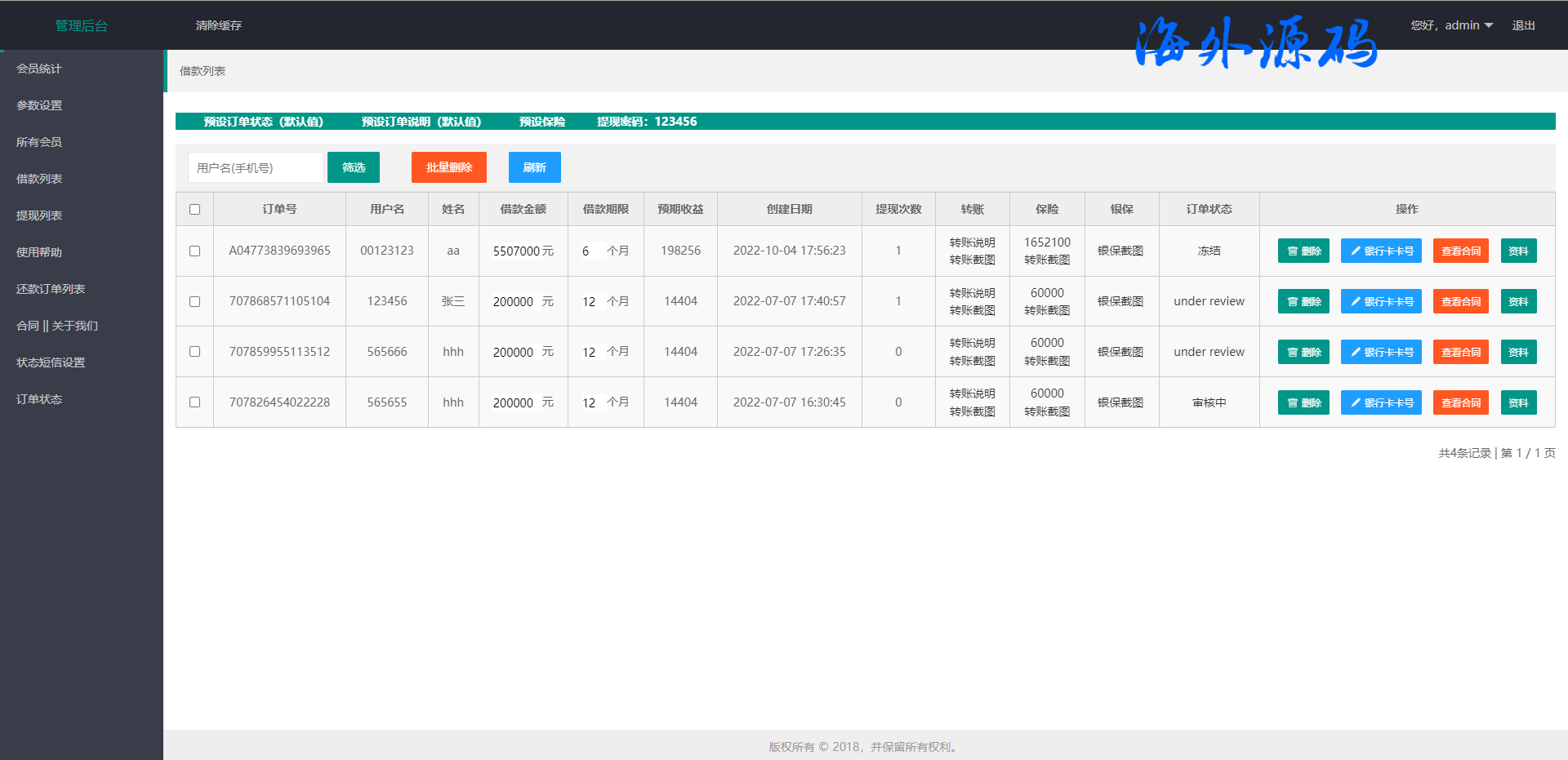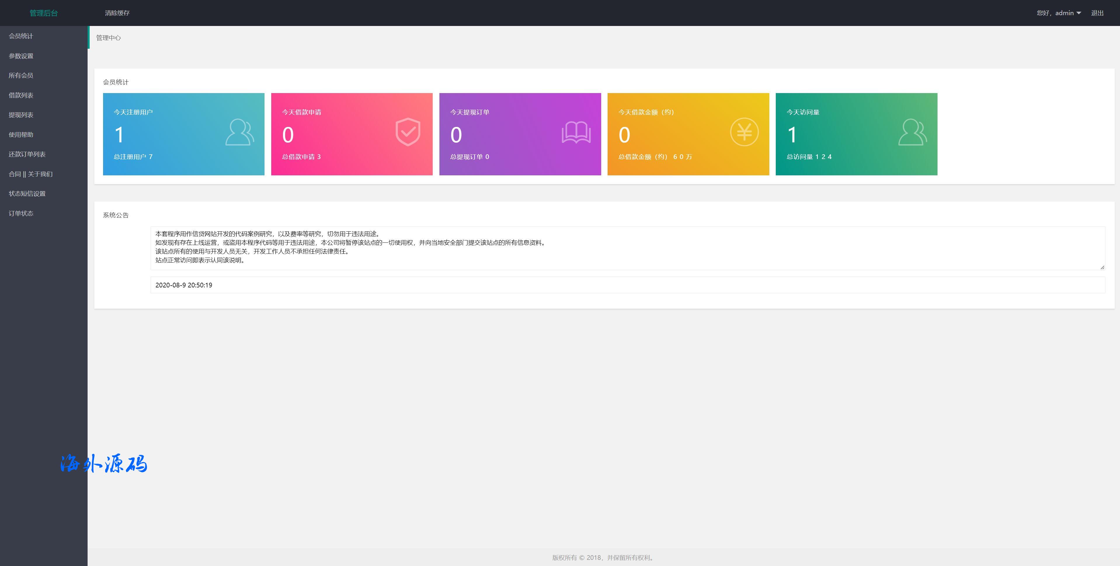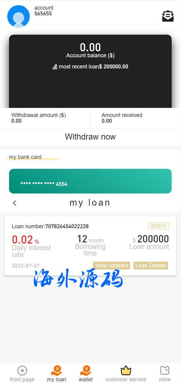 海外贷款平台/小额贷款系统/信用分/合同/提现码