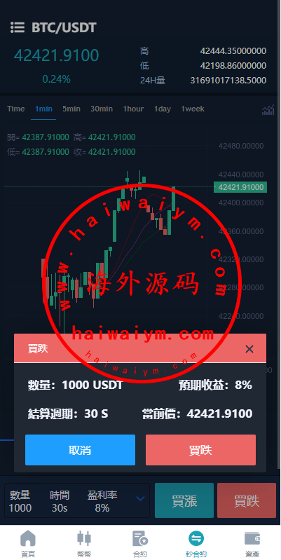 新UI海外微盘系统/虚拟币秒合约/多语言时间盘