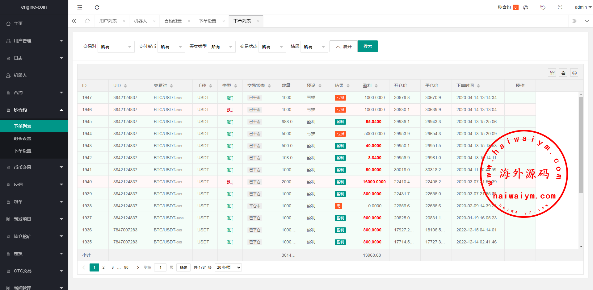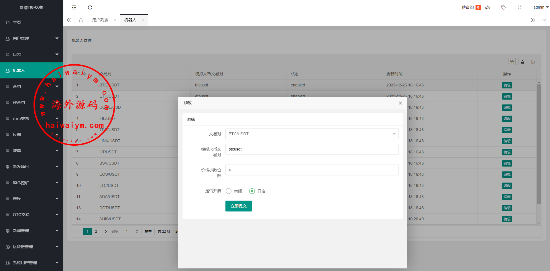 多语言虚拟币交易系统/秒合约交易/伪交易所/时间盘