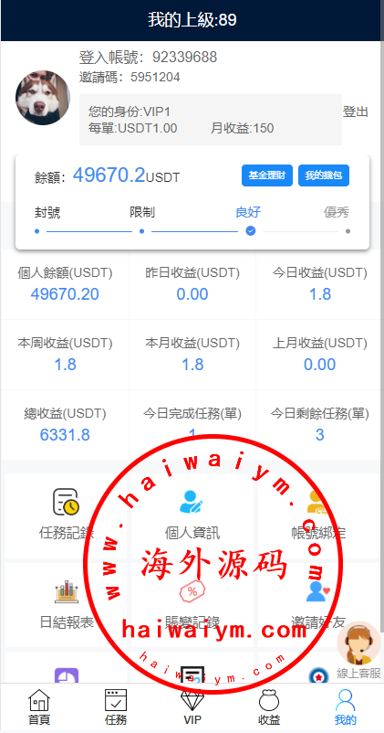 VIP任务理财系统/增流投资理财/任务系统/前端uniapp