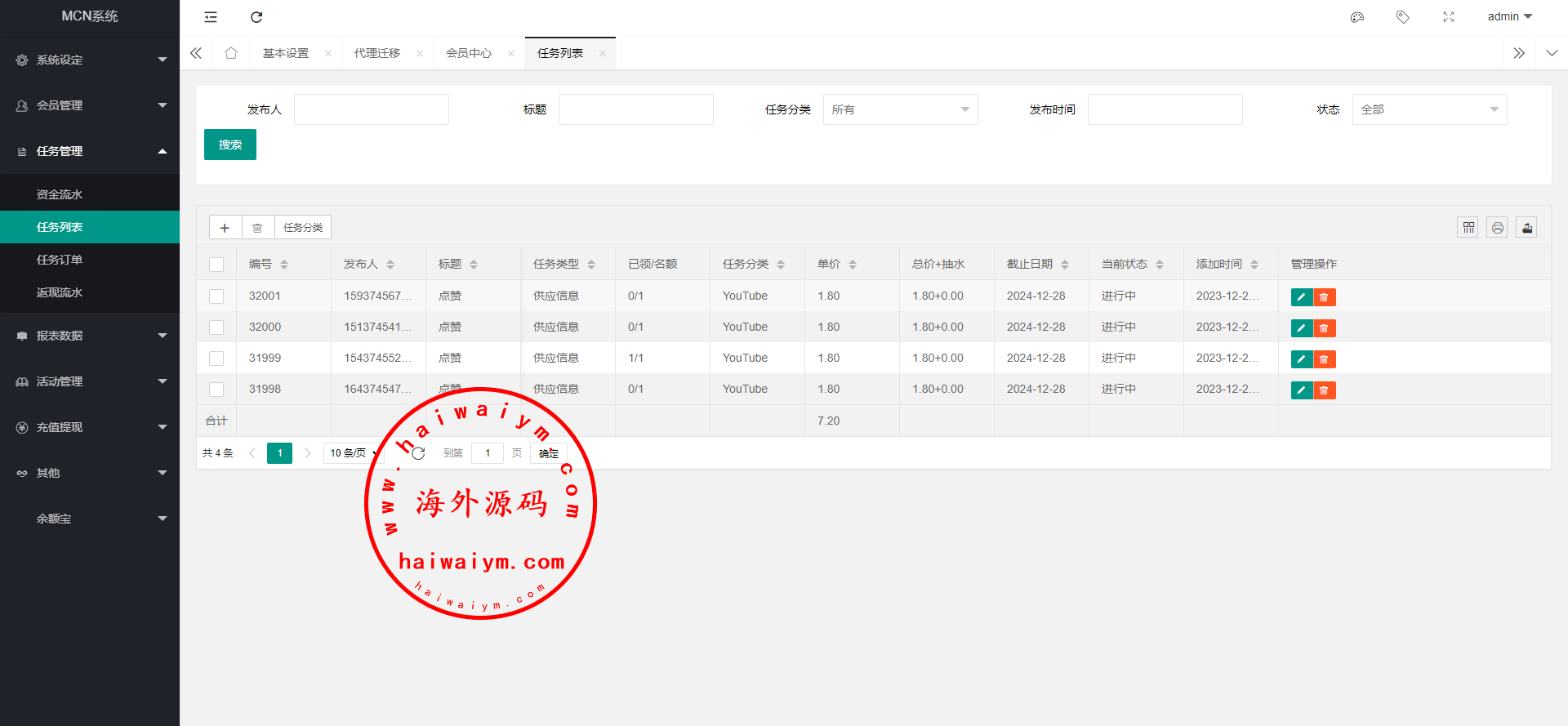 海外多语言电影任务系统/电影投资刷单源码