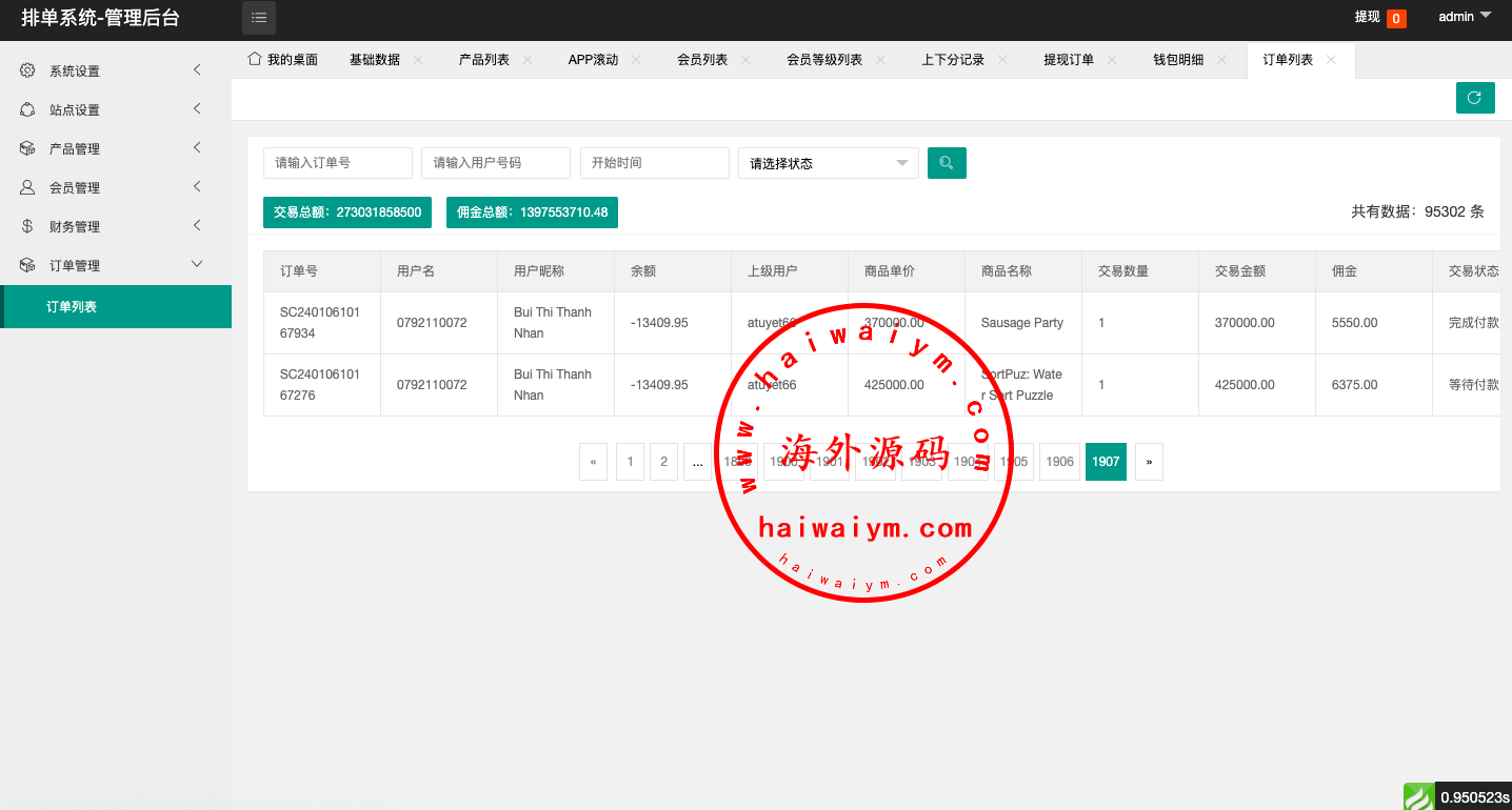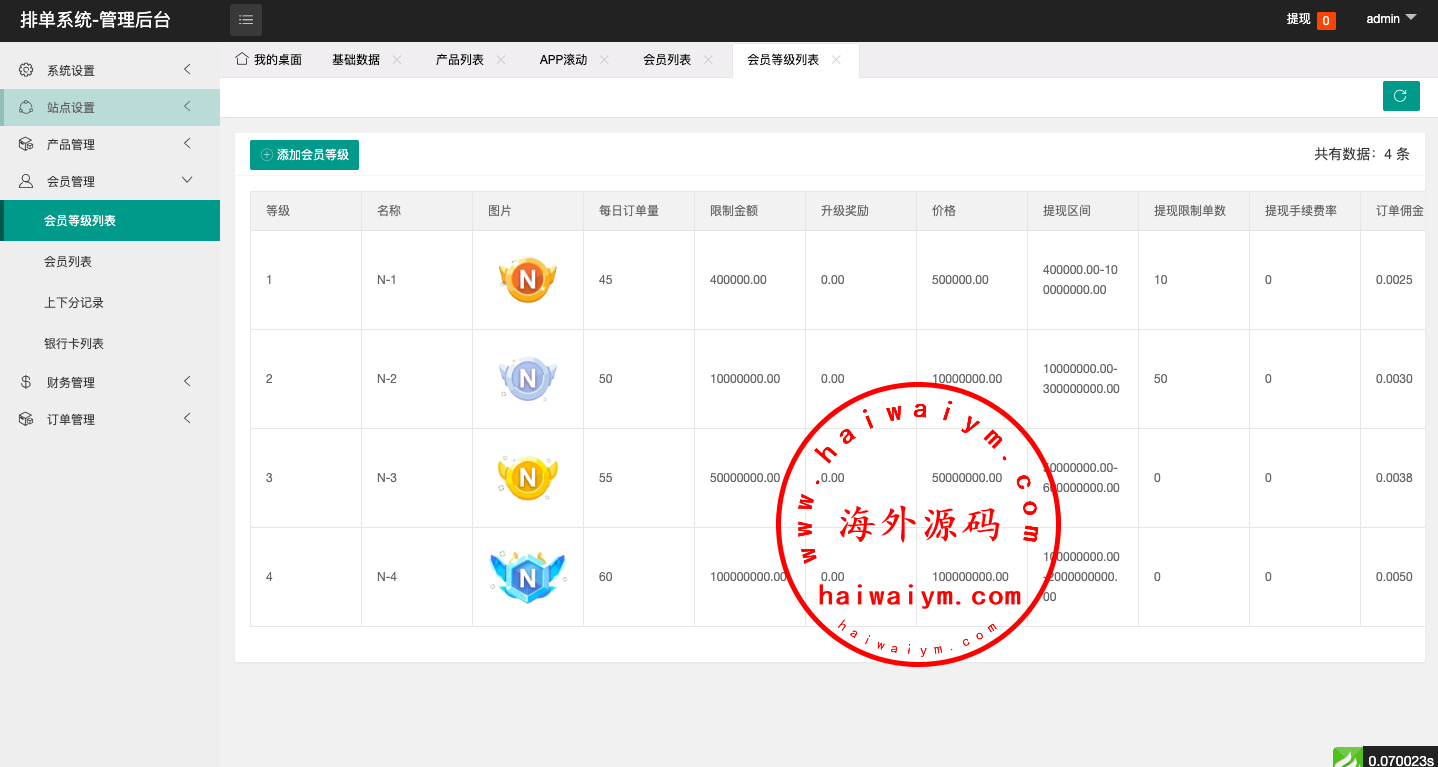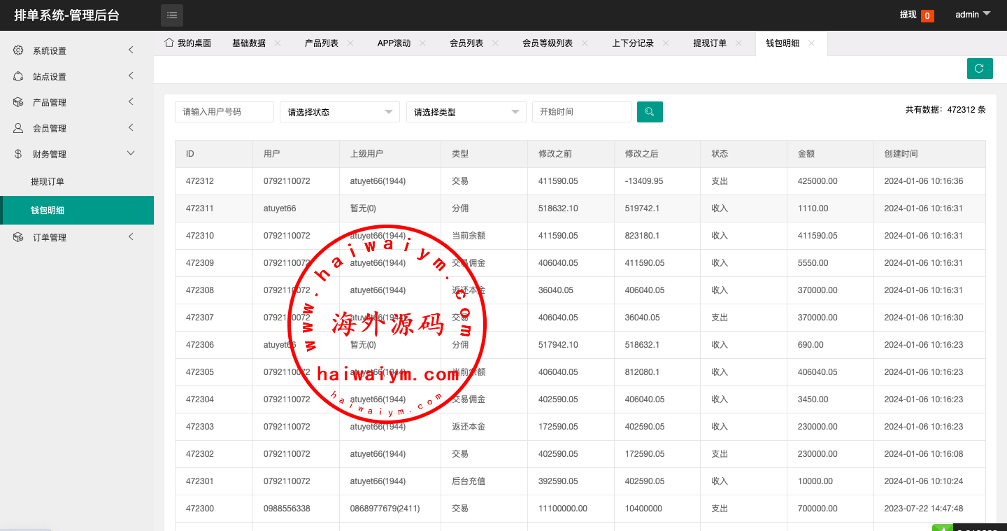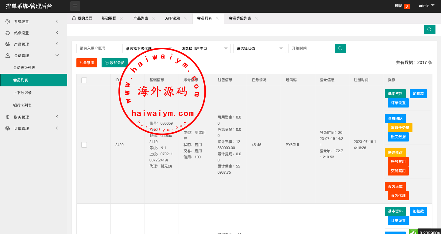 5级返佣功能,后端卡单连单功能完美使用,代理是权限代理