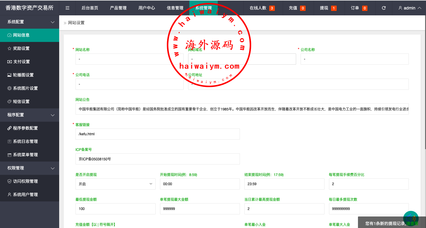 系统完美运行,框架非以前的至尊框架,前端k线正常,产品名称后台可任意修改