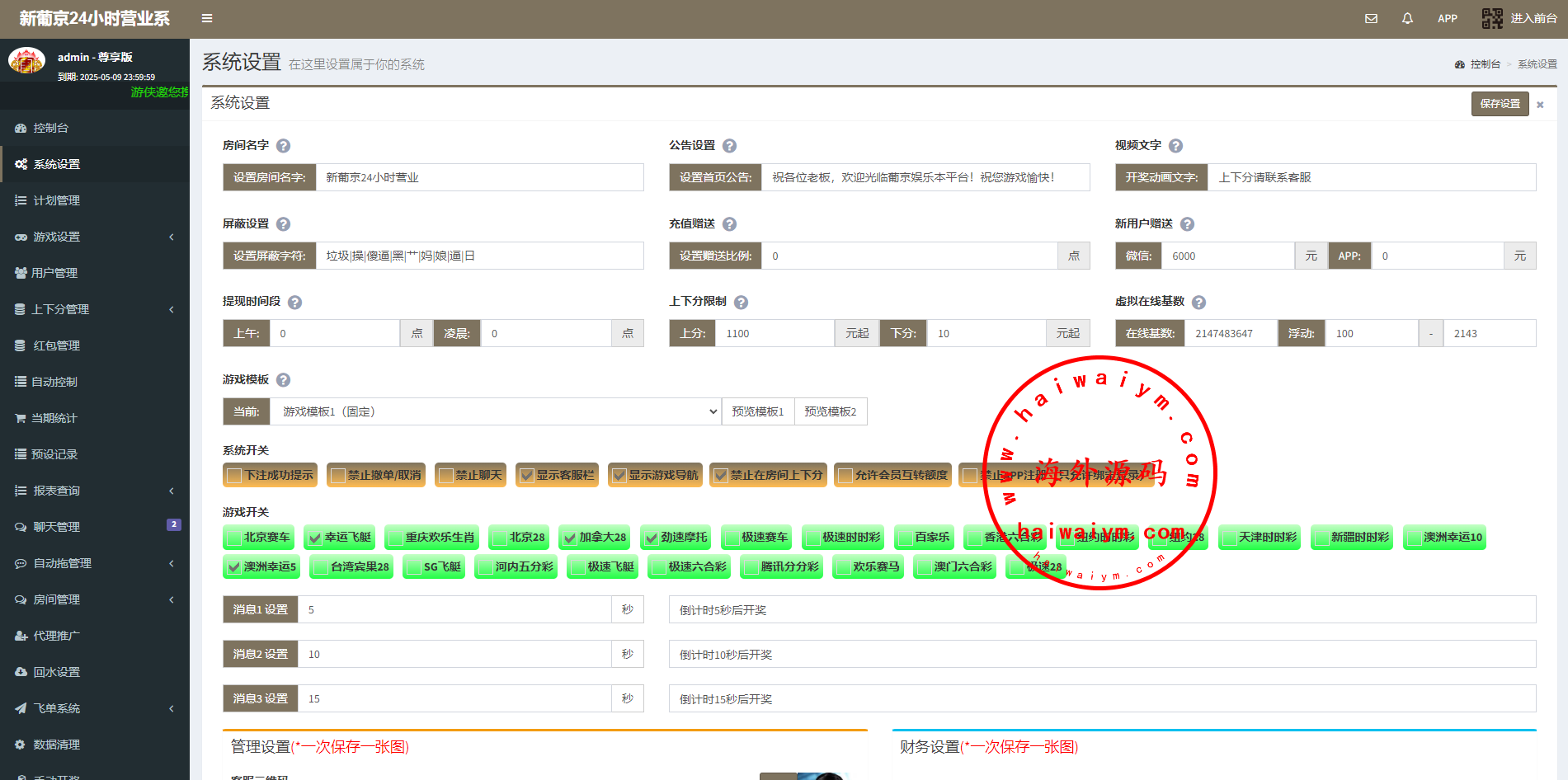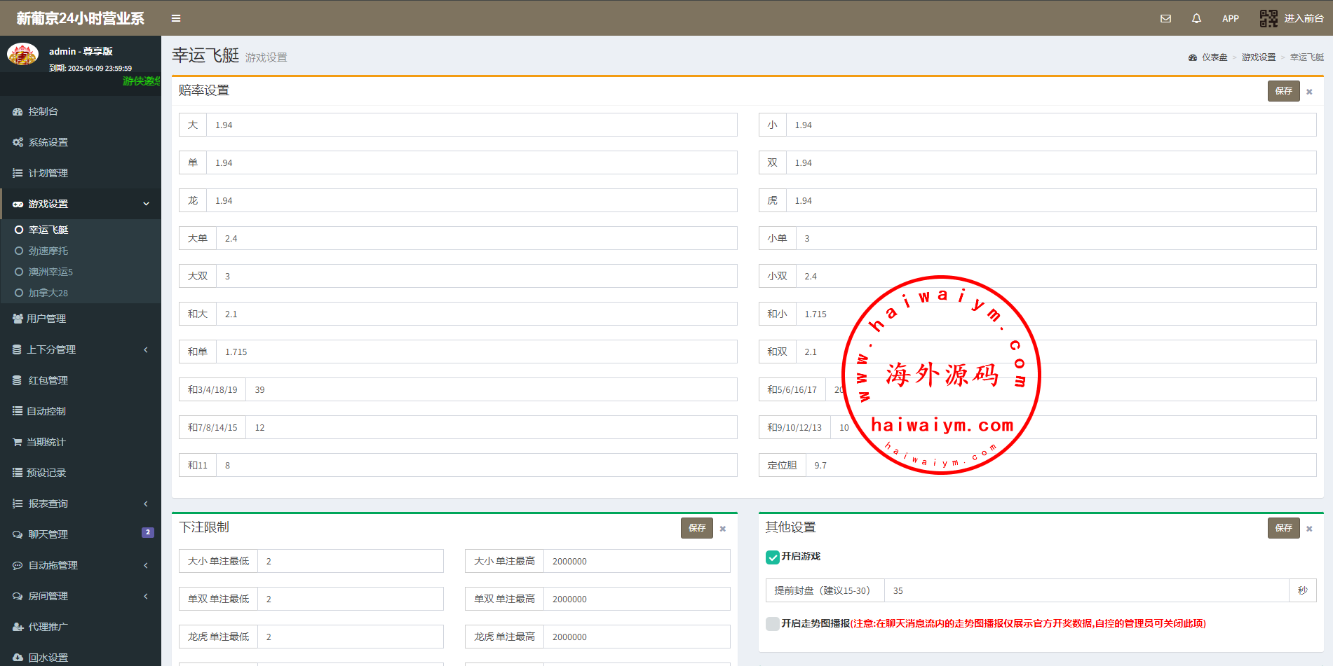 ,可无限开房,智能控制,开奖预设,手动开奖,对接第三方