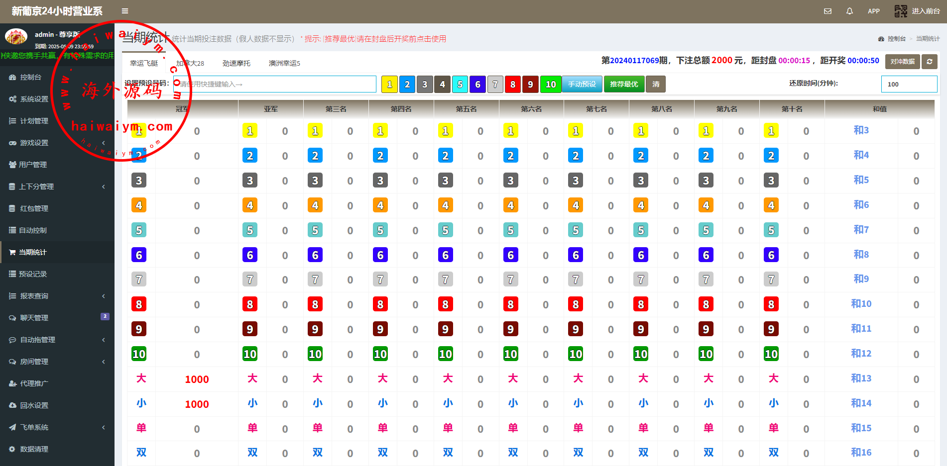 新版仿飞天娱乐CP系统/江湖娱乐cp系统/开奖预设/单独房间