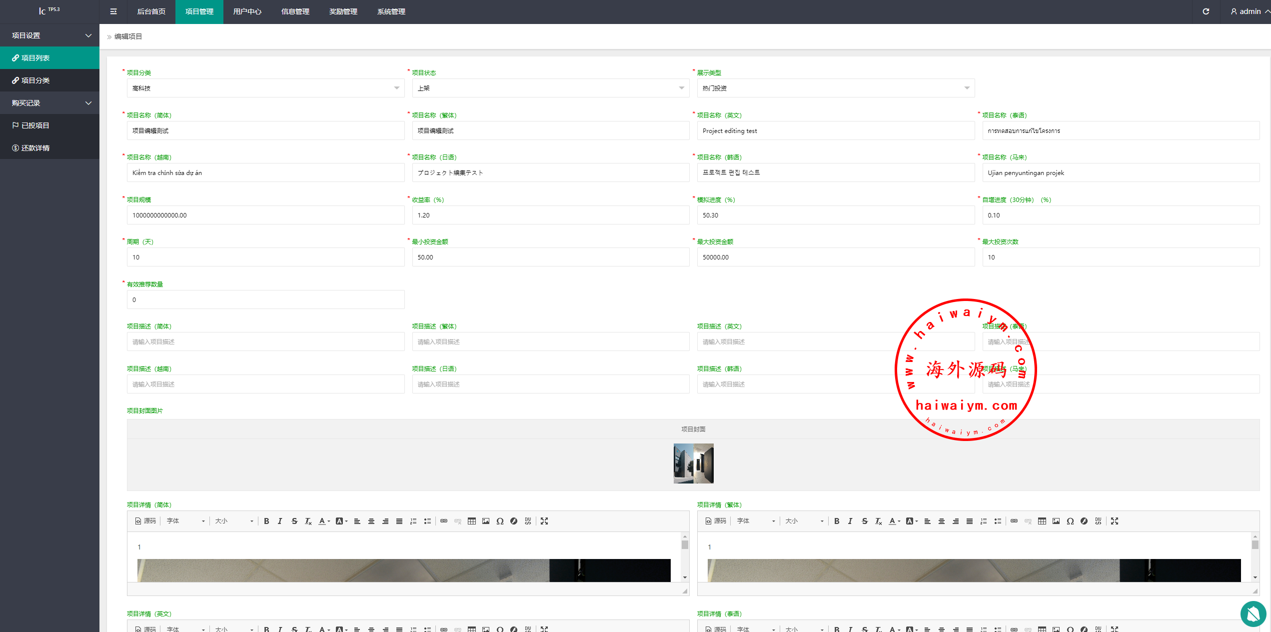 海外投资众筹系统/越南投资理财/前端VUE