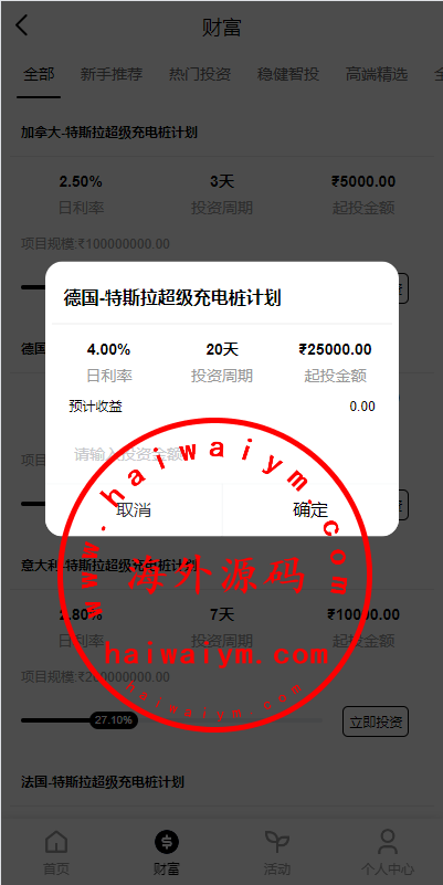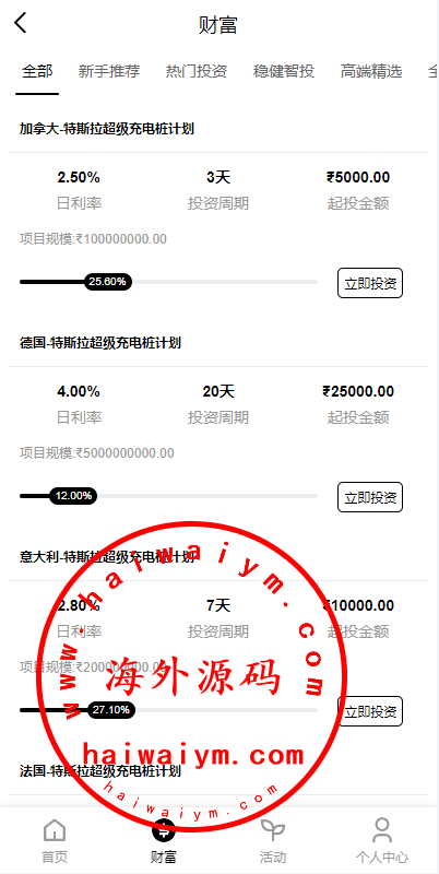 多语言投资理财系统/新能源投资返利/海外投资众筹系统