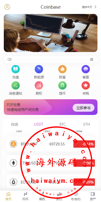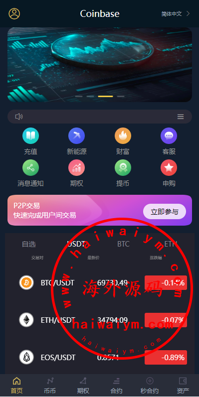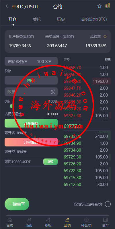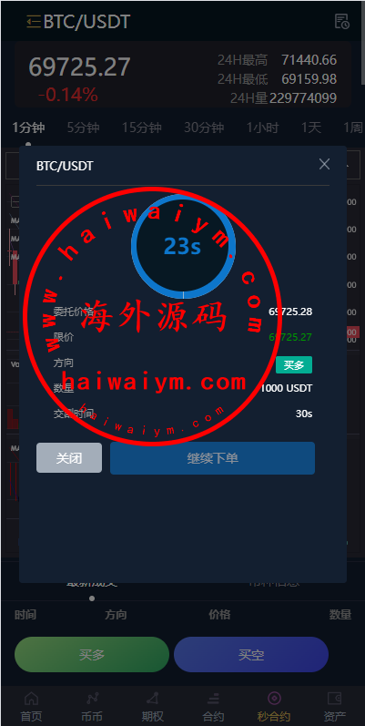 多语言虚拟币交易系统/秒合约交易/伪交易所/时间盘