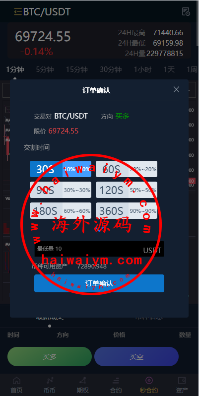 多语言虚拟币微盘/海外微交易/秒合约/时间盘