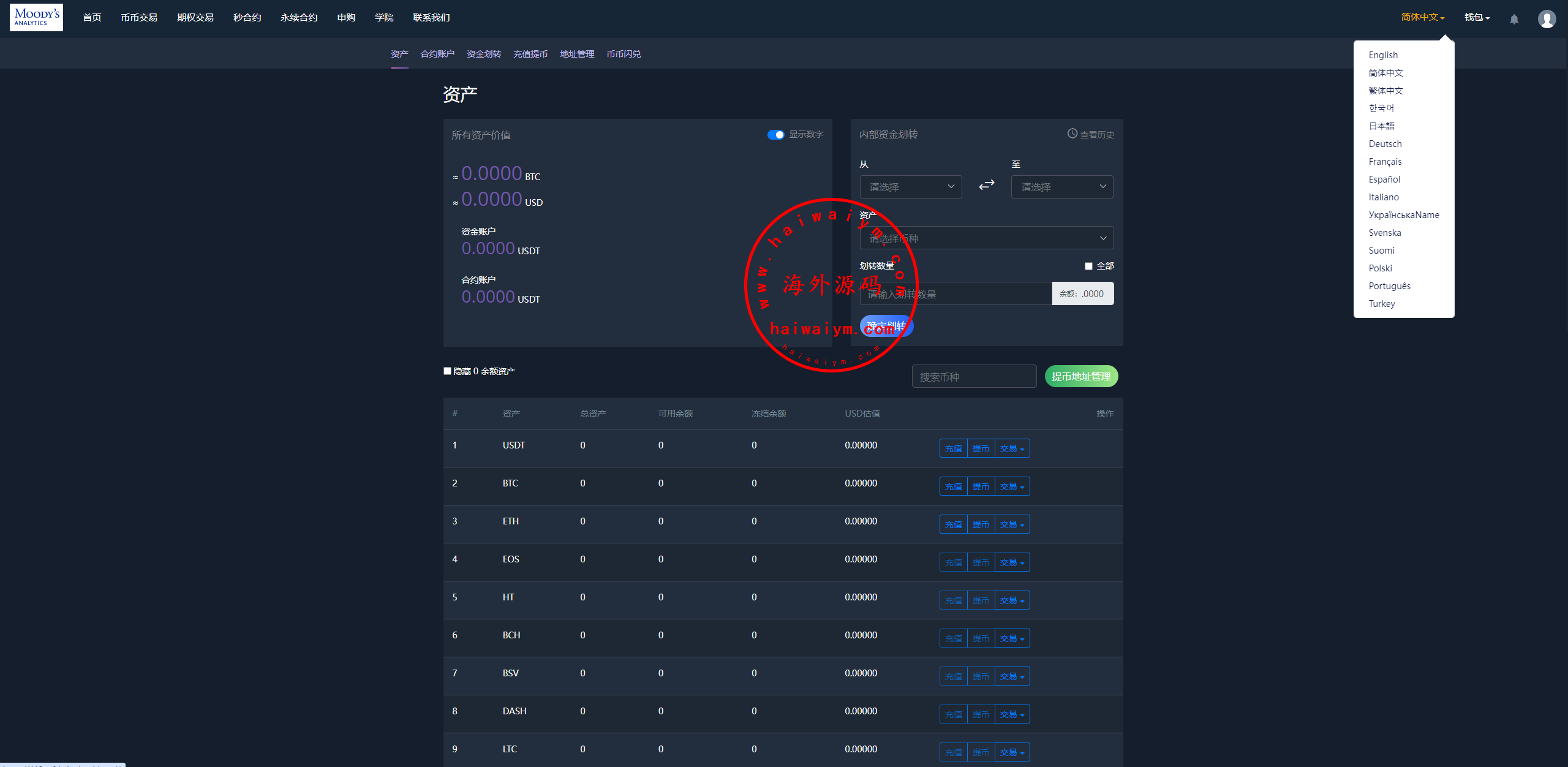 多语言综合交易所系统/外汇/期货/虚拟币/量化/申购交易