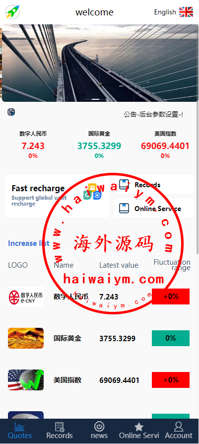 前端中文英文双语言,证券期货微交易,产品假数据虚拟币改名称