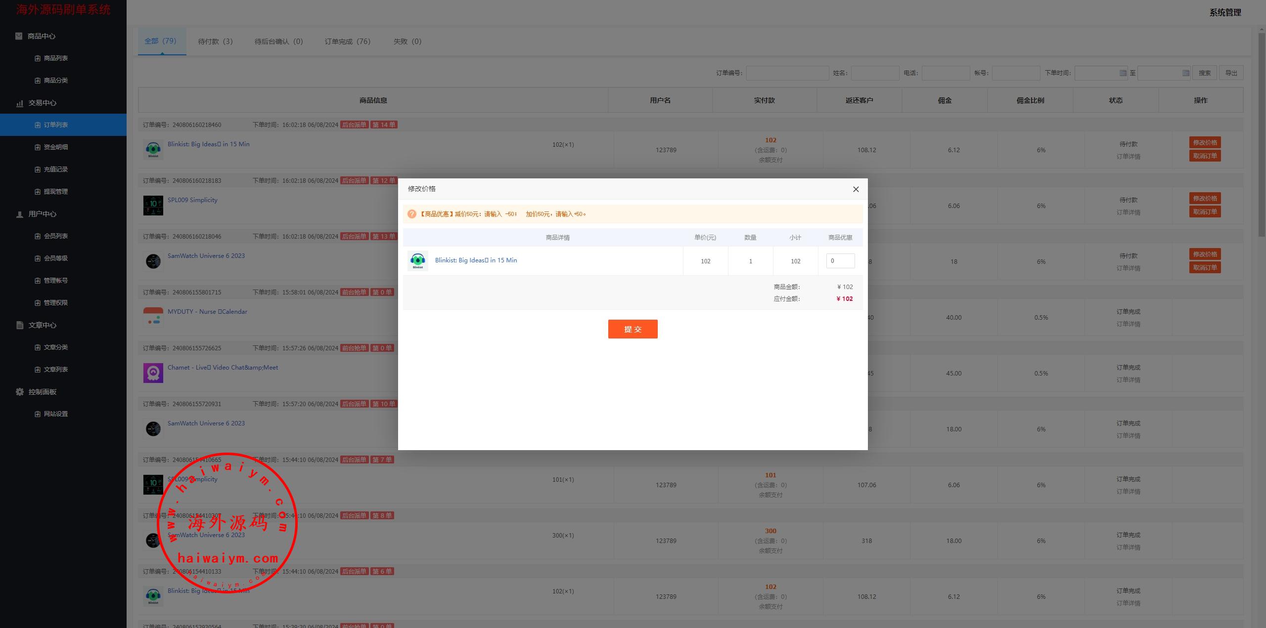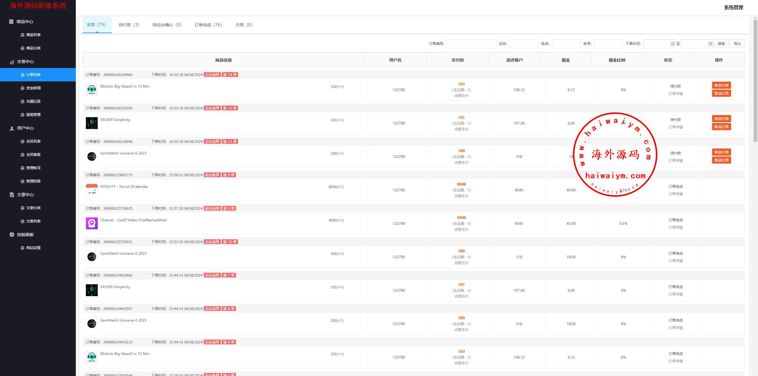 海外奢饰品抢单刷单系统/卡单连单/信誉分/海外刷单